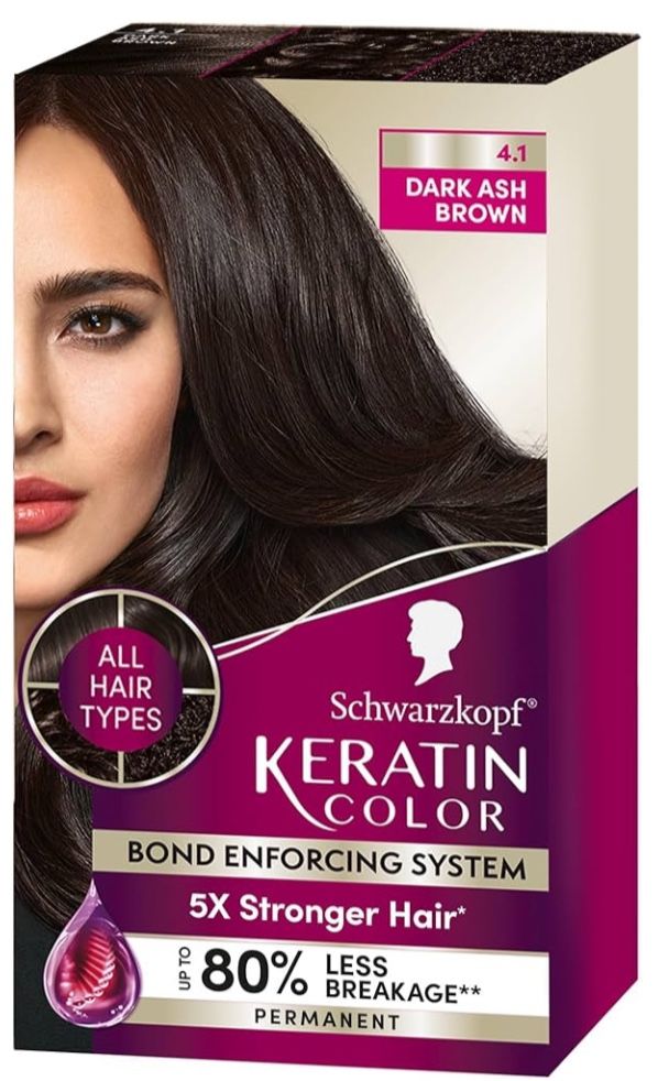 Schwarzkopf Keratin Color Permanent Hair Color Cream, 4.1 Dark Ash Brown, 4.1 Dark Ash Brown, 1 count
