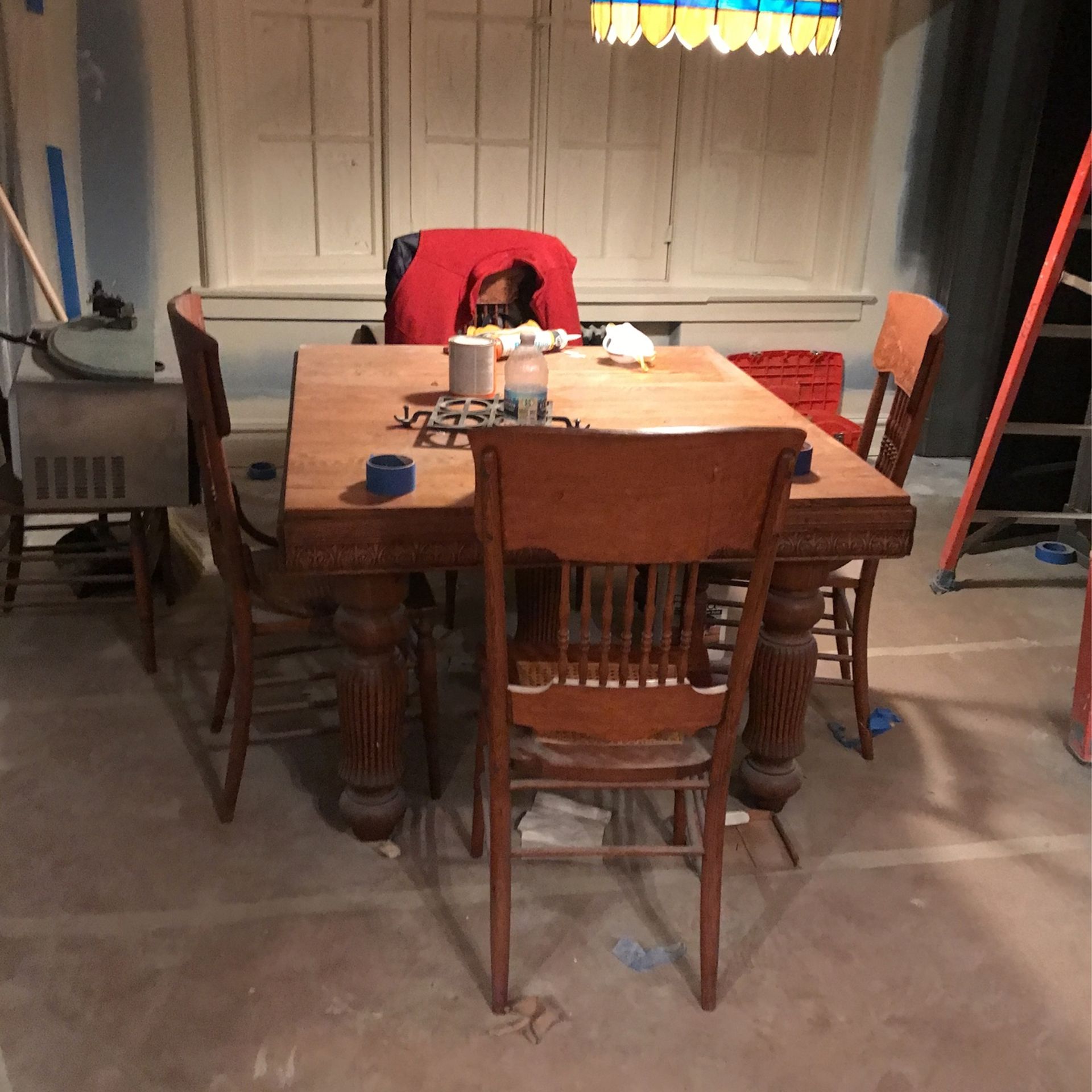 The side chairs has machine cane on the seats in good condition with a little work it will look amazing really thick legs and the table top extends 94 “