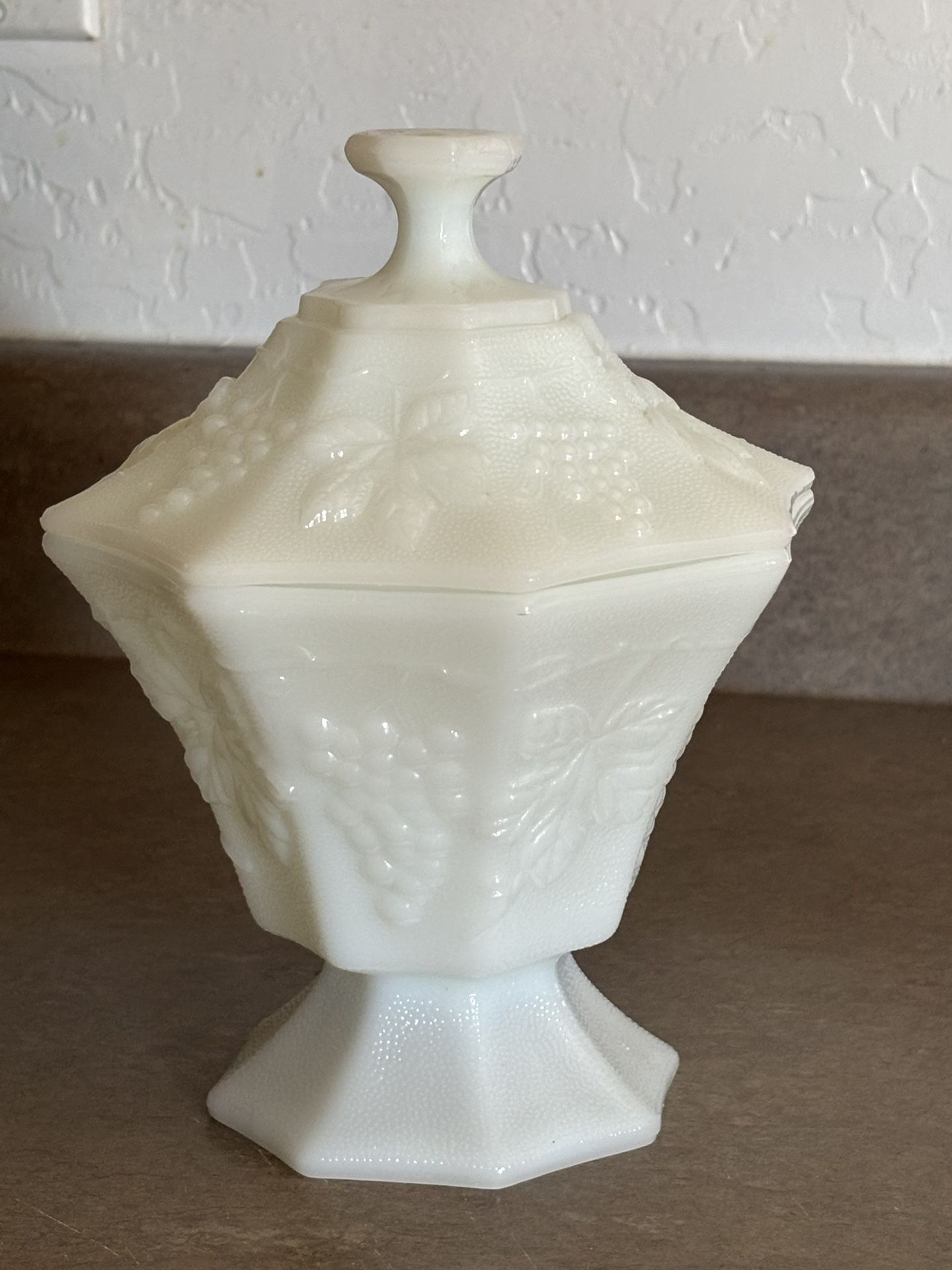 See pictures for dimensions 1940’s Anchor Hocking Harvest Grape pattern