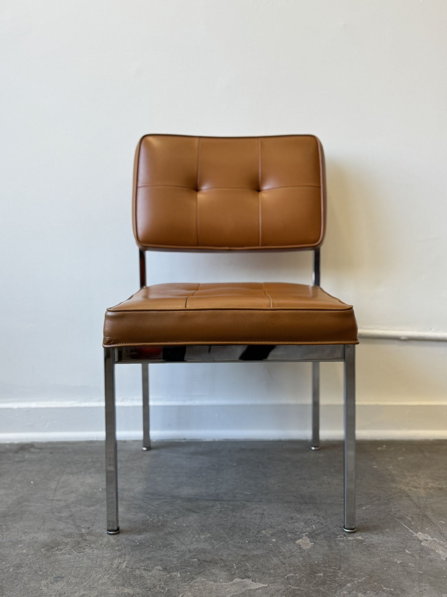 Just arrived! We are pleased to offer this fantastic vintage side chair by the American manufacturer Shaw Walker. The perfect blend of industrial design and timeless appeal, this piece features a striking chrome frame and plush, button-tufted caramel-tan upholstery. Shaw Walker was known for durable, office-focused furniture, and this model makes for an excellent accent chair in any modern dining room or office space. . 20” W x 31” H x 21” D . $275 . Delivery is available for additional fee Check out our ig: @vintageconceptdesign