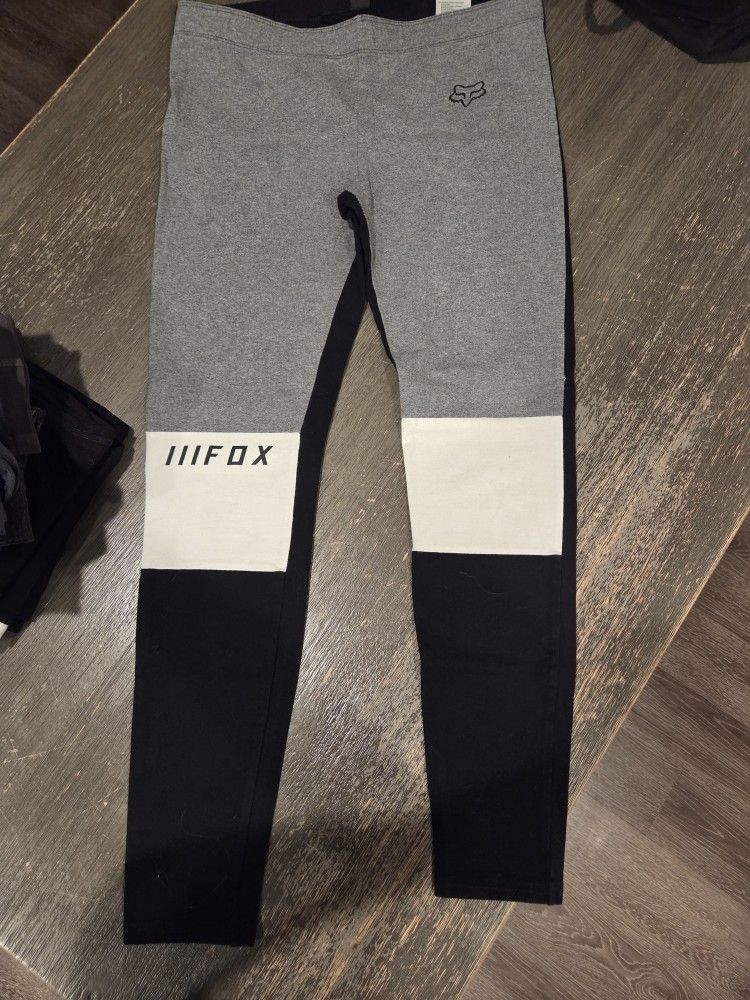 All black on back & black, Grey & white on front. Cotton. Size M(womens). Very cute! Like new.