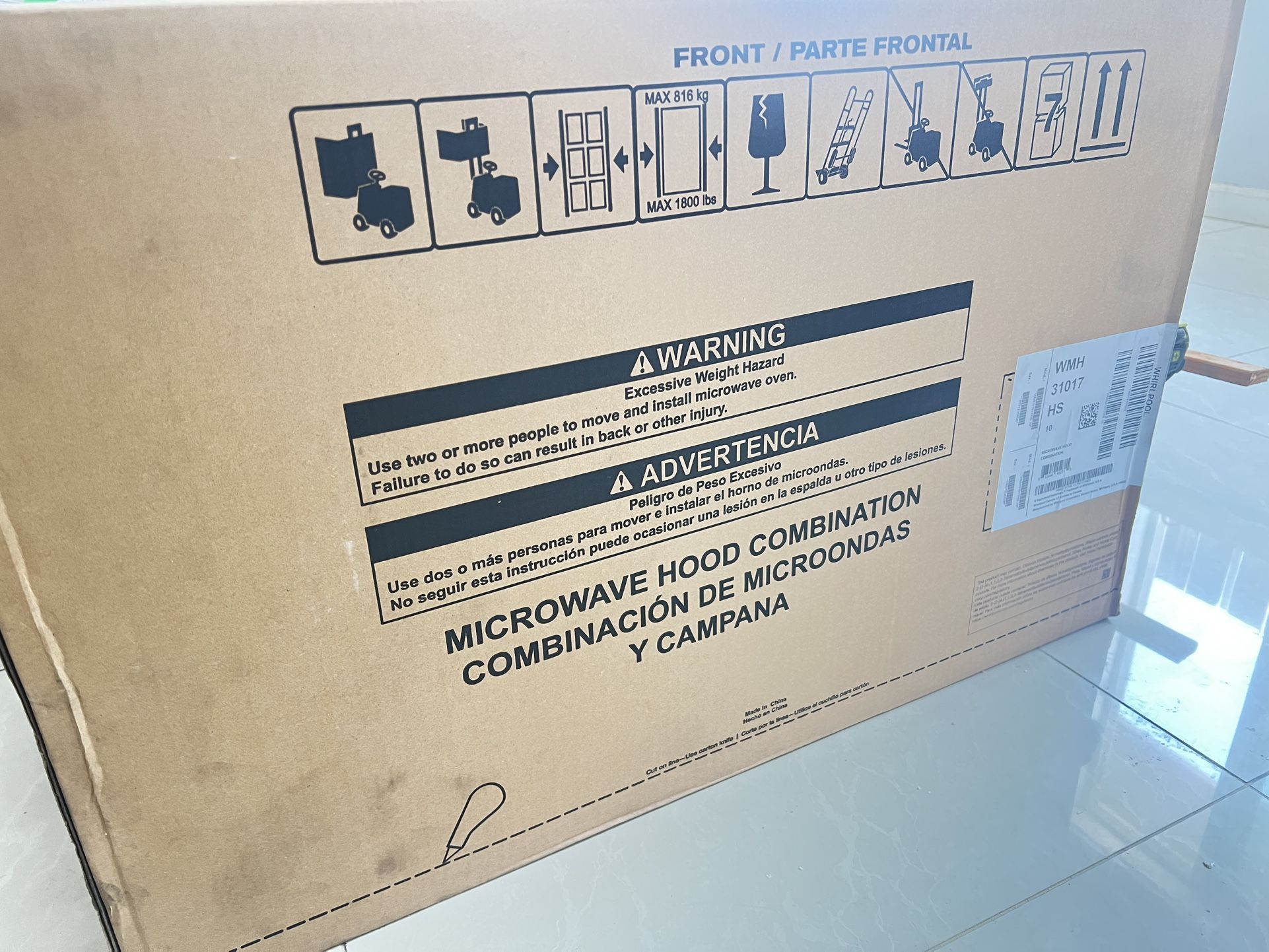 Brand new Whirlpool over the range microwave. New in box. Easy to load. Will help you load! Pickup in aiea!!