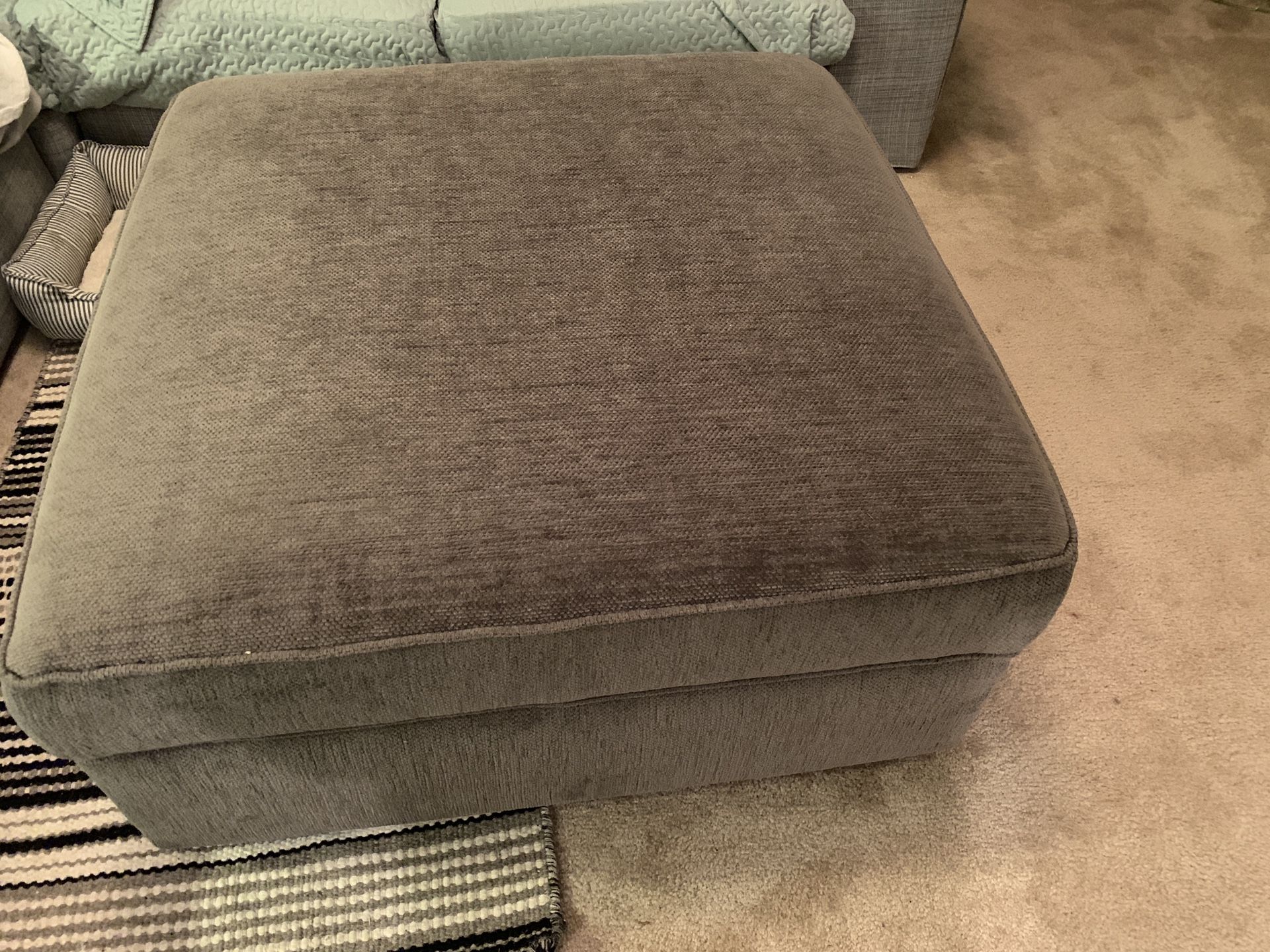 High quality ottoman originally purchased from Ashley furniture. Looks very new, no stain, no scratch as it has been always covered with a blanket, plenty storage room to fill in several blankets or pillows