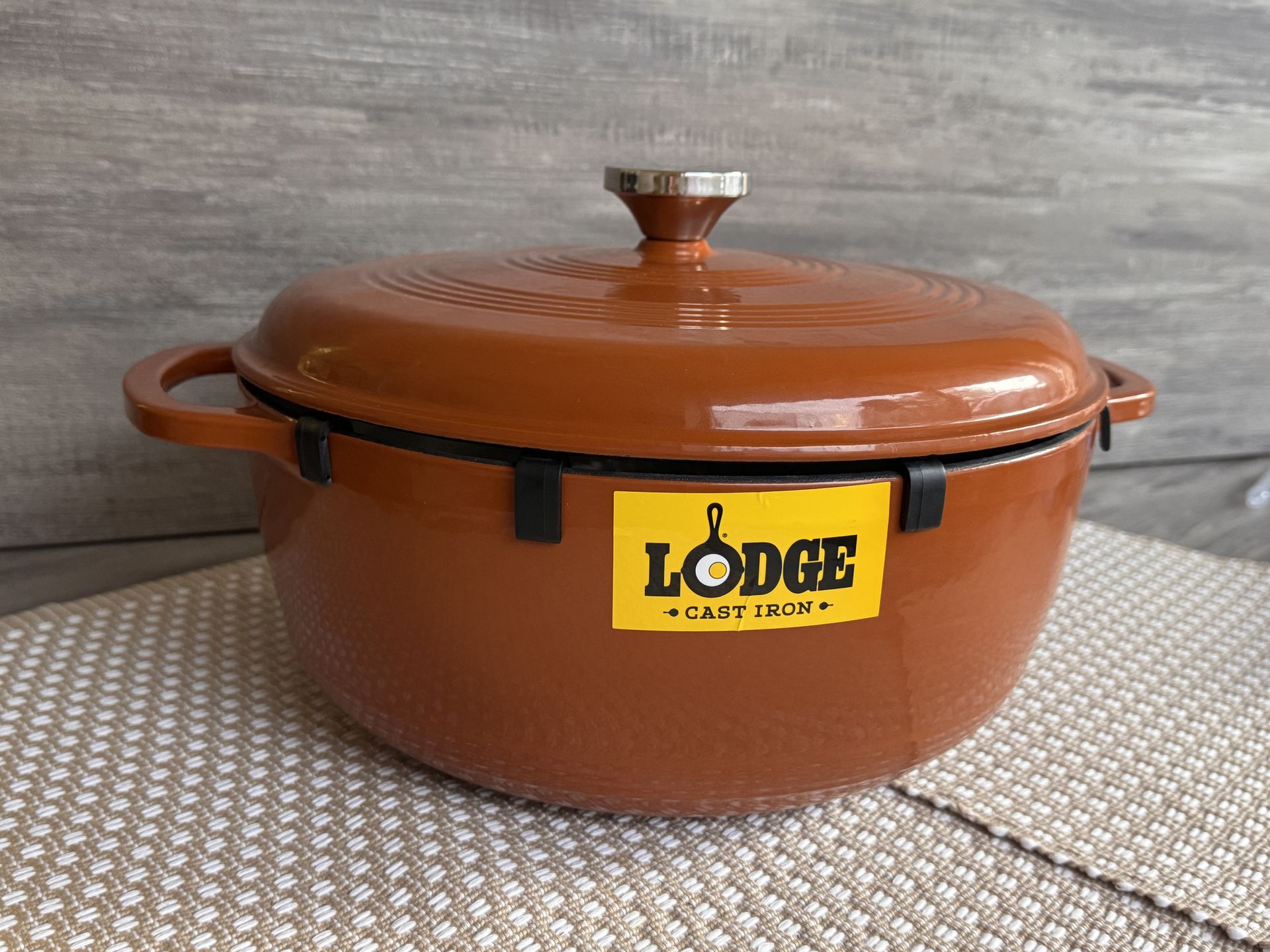 Brand New Lodge 7.5 Qt Enameled Cast Iron Dutch Oven – Rustic Orange 🍂