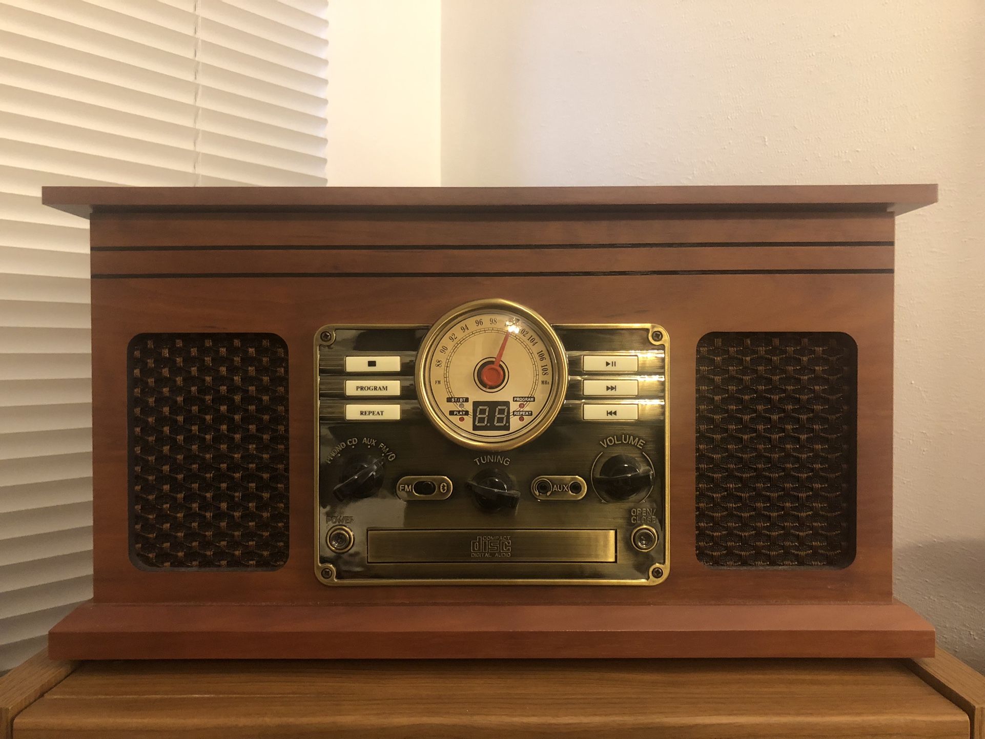 Nostalgic entertainment center, mint condition, works excellent, Bluetooth capability. Record player, CD, AM/FM/ Cassette.