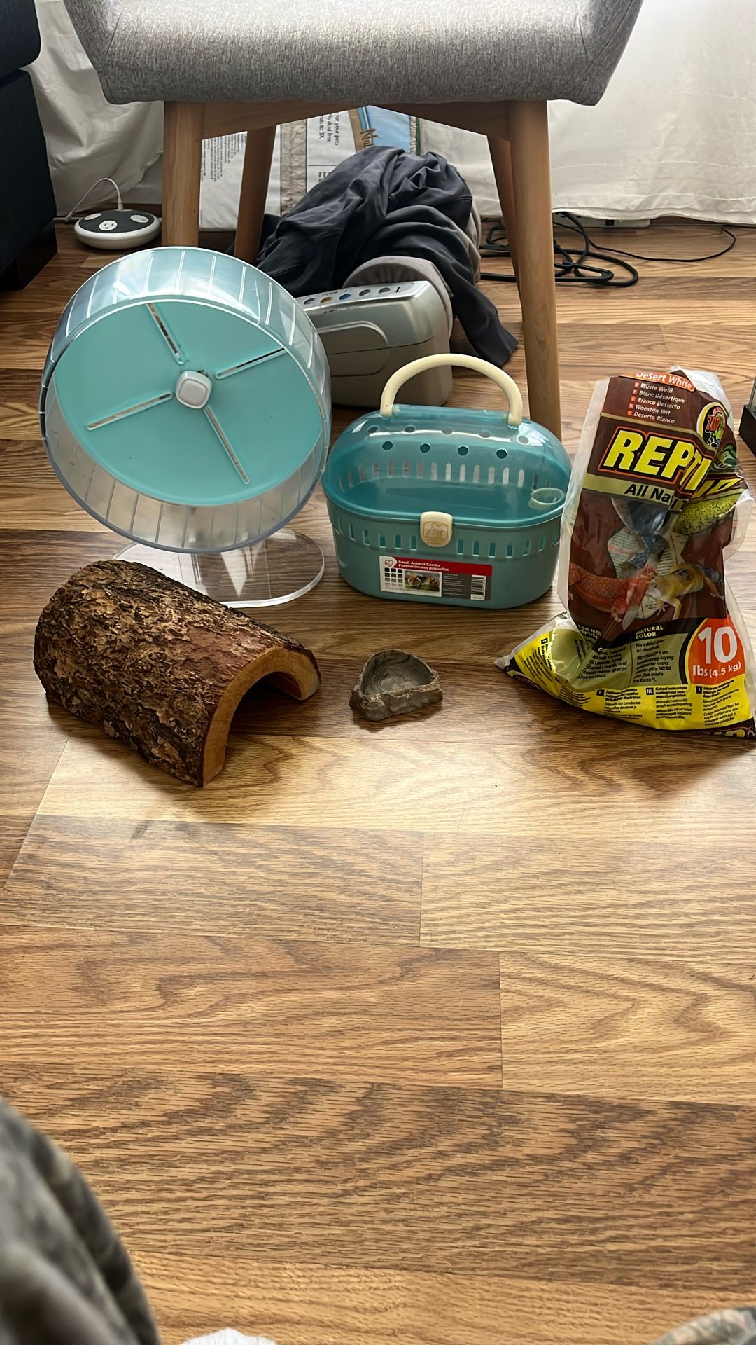 Good size hamster wheel little trunk hideout hamster carrier rock water bowl repti sand for hamster sand bath