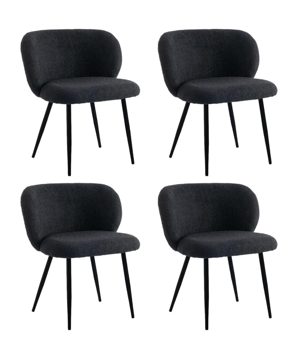 Modern Teddy Dining Chairs Set of 4, Comfy Kitchen Armless Chairs with Thick Cushions, Wingback Chair, Upholstered Dining Room Chairs with Metal Legs