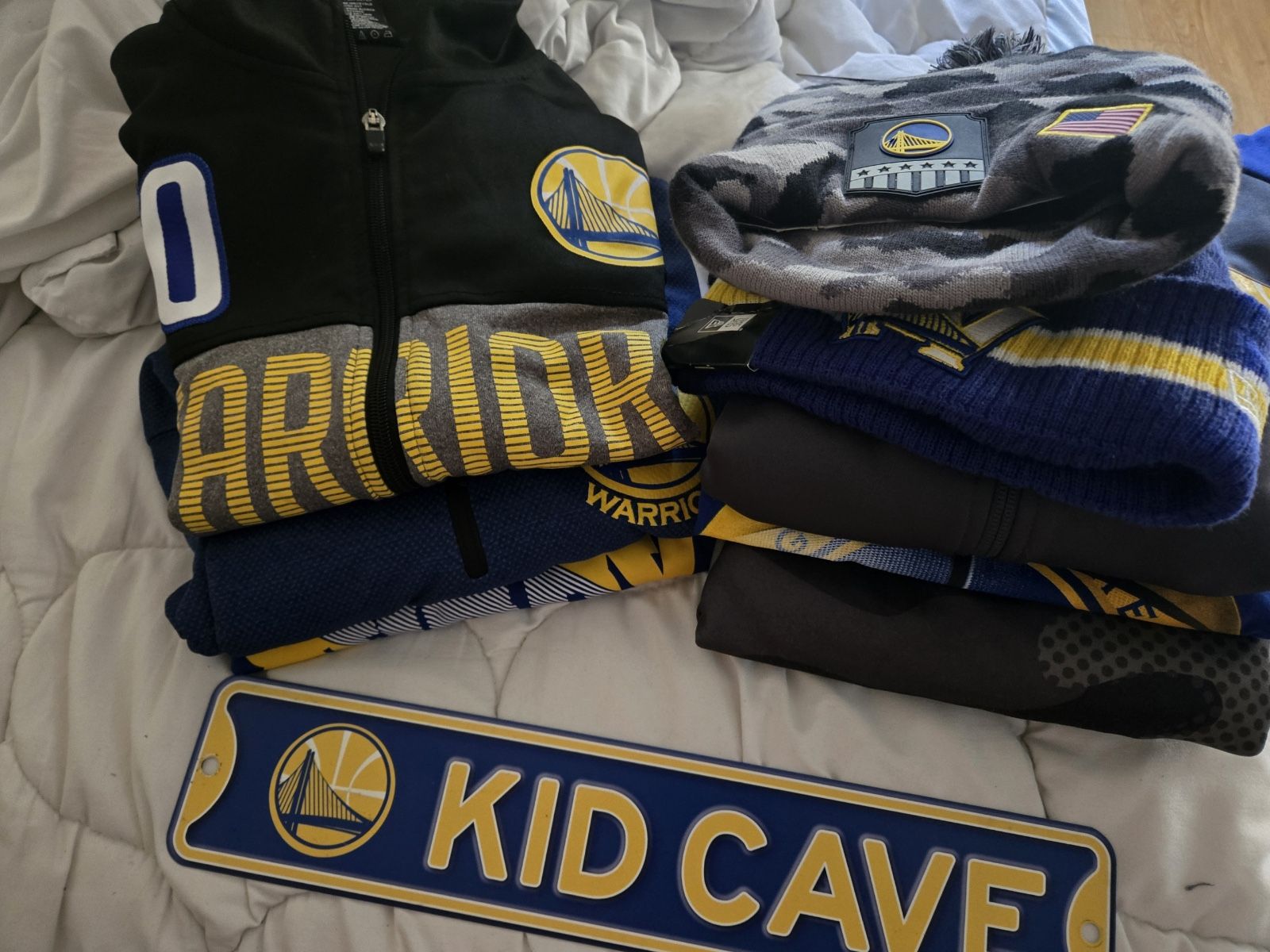 Hello I got 2 new beanies, new shirt ,and 2 new jackets/hoodies. Then I got 4 hats , and 3 hoodies/jackets. All are youth 18/20 or size small men’s sign included too . Please don’t waste my or ur time with low balls, trades, or asking for delivery