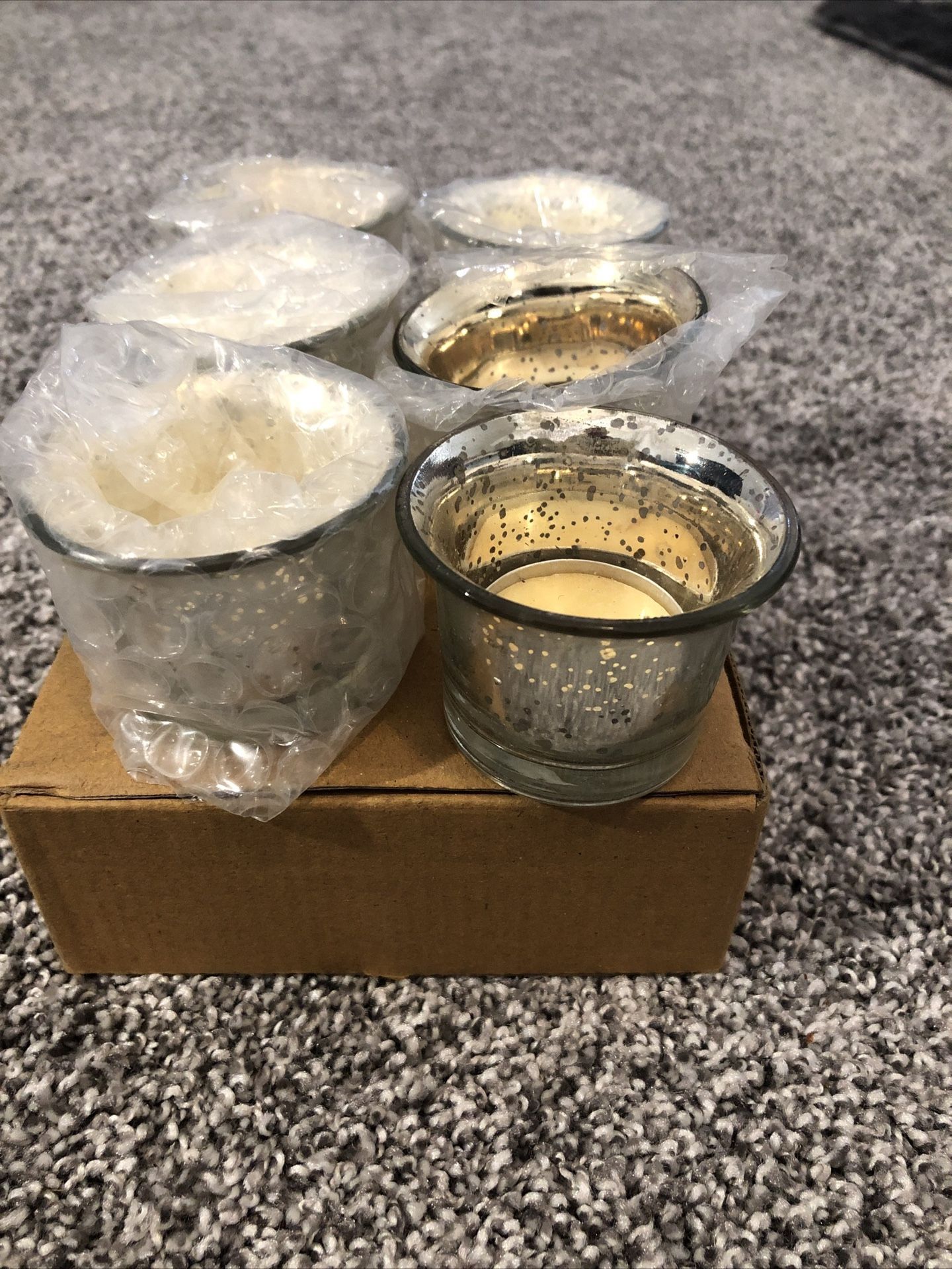 Hosley Set Of 6 Tealight Candles With Speckled Holders - NEW