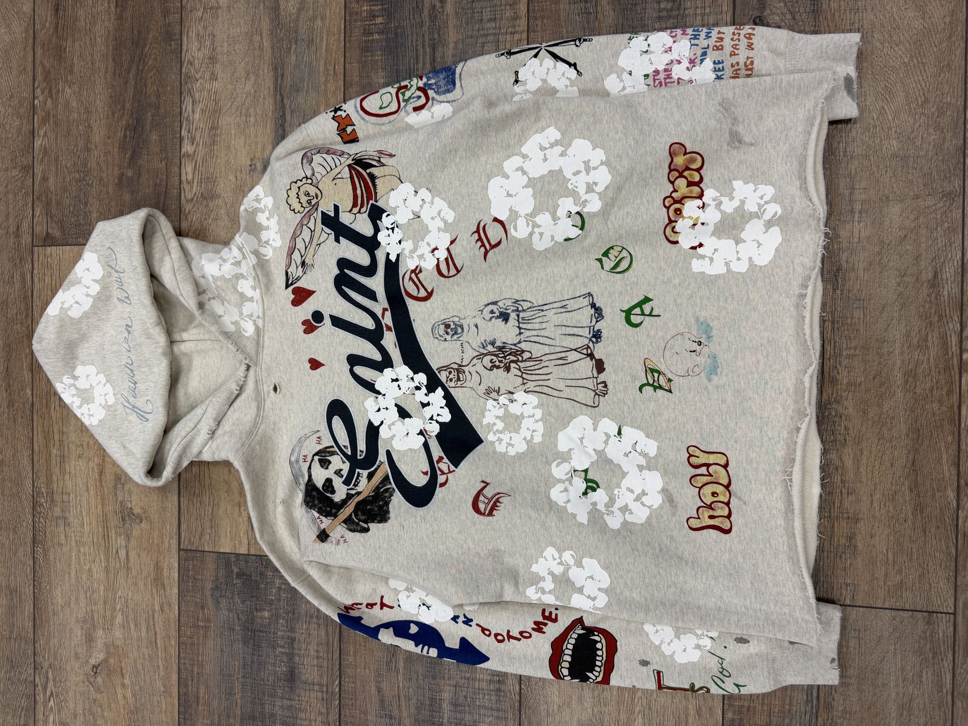 Saint denim tear hoodie
