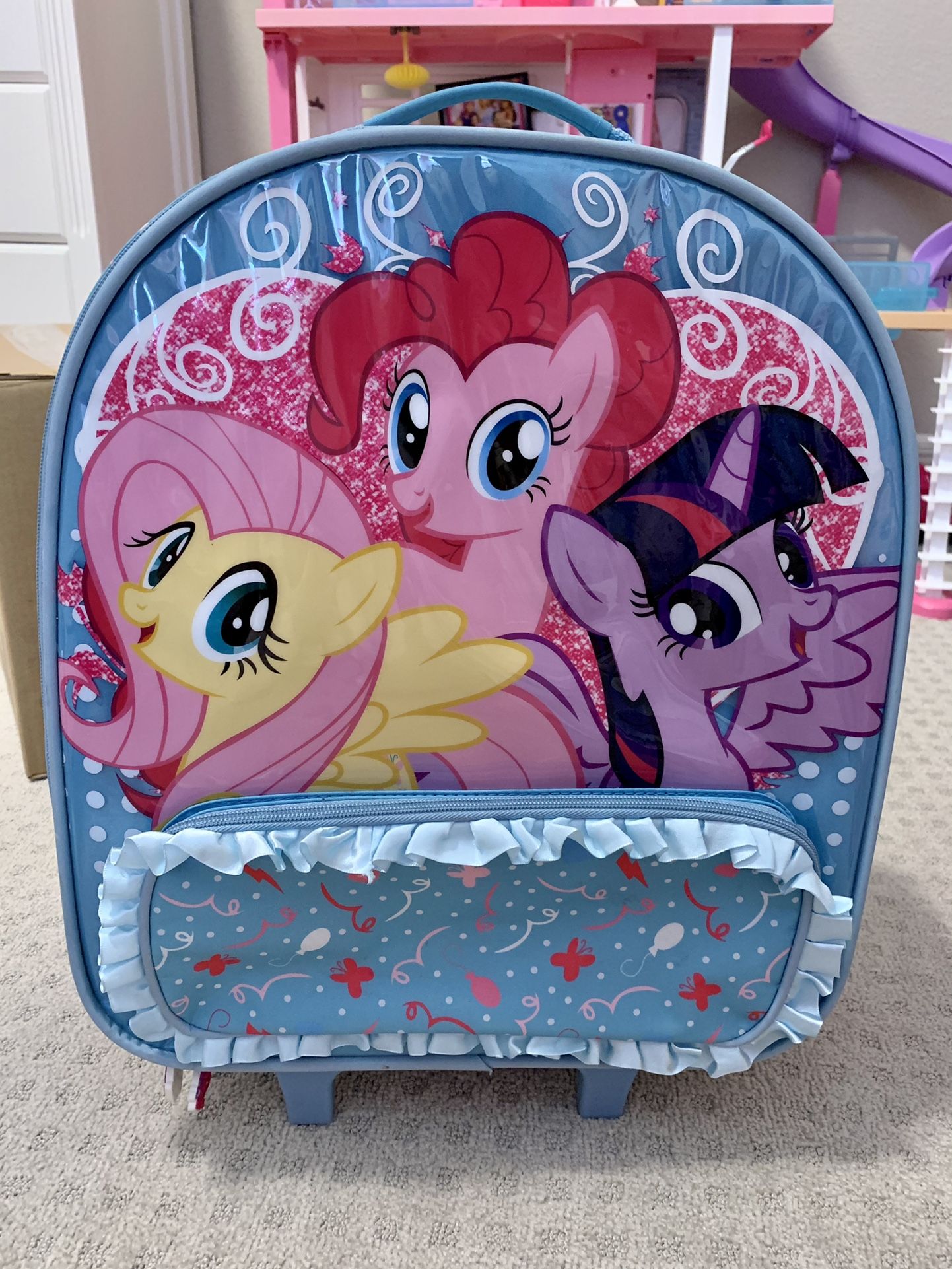 My Little Pony carry on plane luggage. It’s never been used. Just daughter played around in our house. In excellent clean like new condition. Asking $30