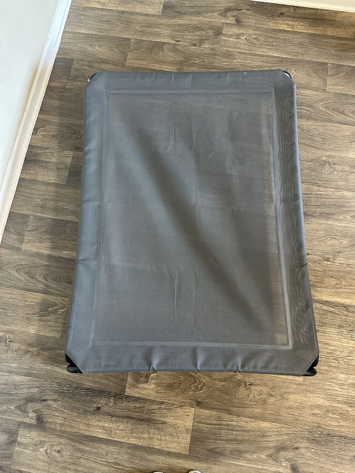 Very strong and sturdy, still in like new condition. 48β by 35β not sure of weight limit but my dog is around 120 and held him fine. He just prefers the couch π