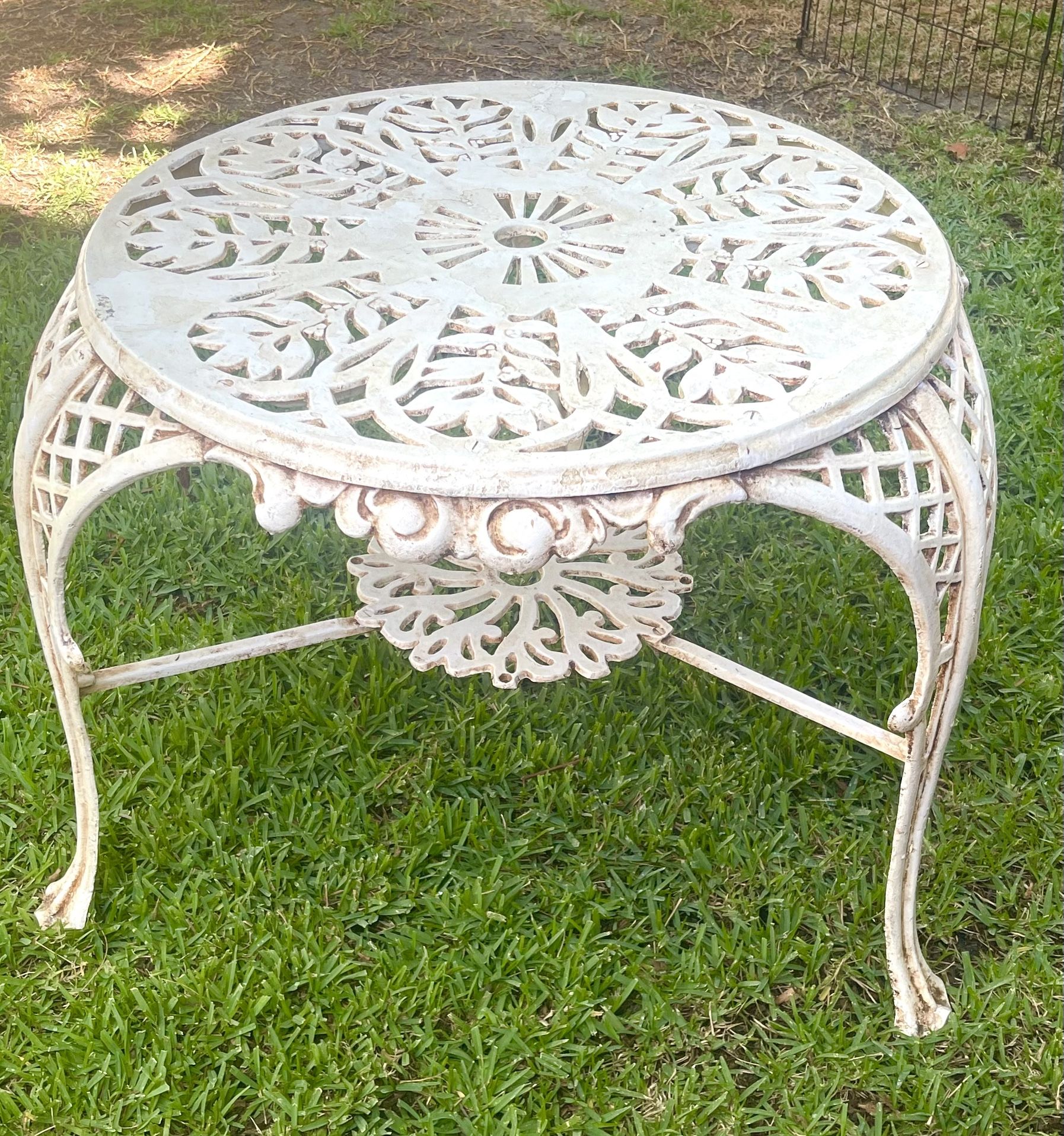 Round white iron garden table, Aged. Mixes well with any style 25”H 28”Dia Pick up in Studio City