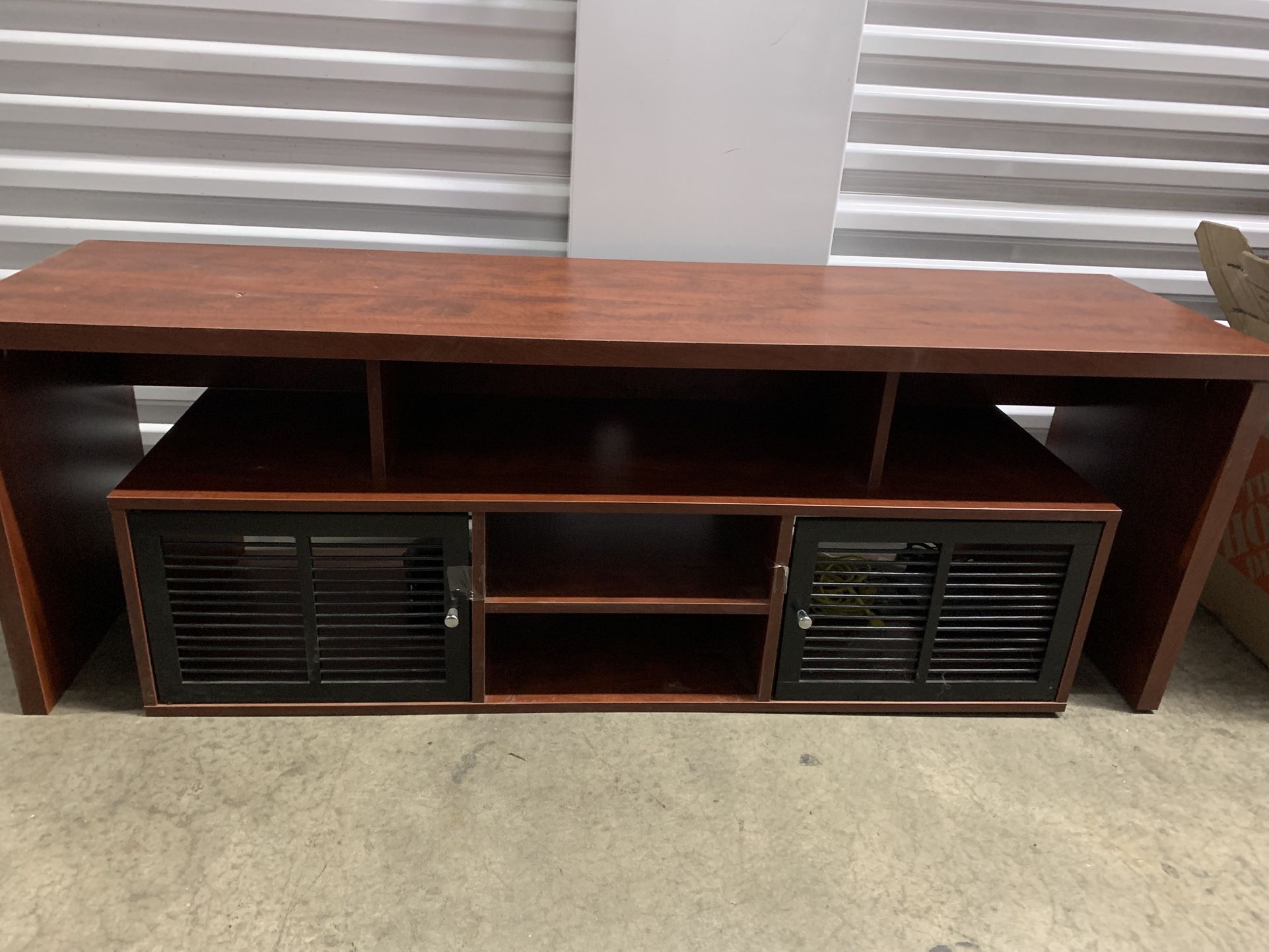 Pick up by appointment. I’m in Woodbridge, and items are stored in Laurel, MD. (Laurel Self Storage). I’m not onsite; my partner in Laurel handles pickups by appointment. Please message your phone number. My partner will reach out to coordinate a date and time. Same-day pickups are usually not possible. Please do not schedule a pickup time if you can’t make it. Thanks for understanding! ——————————————- Modern, clean entertainment console in dark brown finish. Low, wide profile with great storage: open center shelf for components, plus two side cabinets with louvered (slatted) doors for airflow. Sturdy and presentable — perfect for living rooms, bedrooms, or a gaming setup. Finish: dark brown wood-look Storage: open middle shelf + 2 side cabinets (slatted doors) Condition: gently used; clean and solid with normal light wear only Notes: console only (no TV or accessories) Pickup only from storage unit in Laurel, MD. Exact cash. Key Specifications: Fits most TVs Cable management: rear opening(s) Base: plinth-style (sits flat, no legs) Doors: louvered for ventilation Pickup in Laurel, MD 🚚