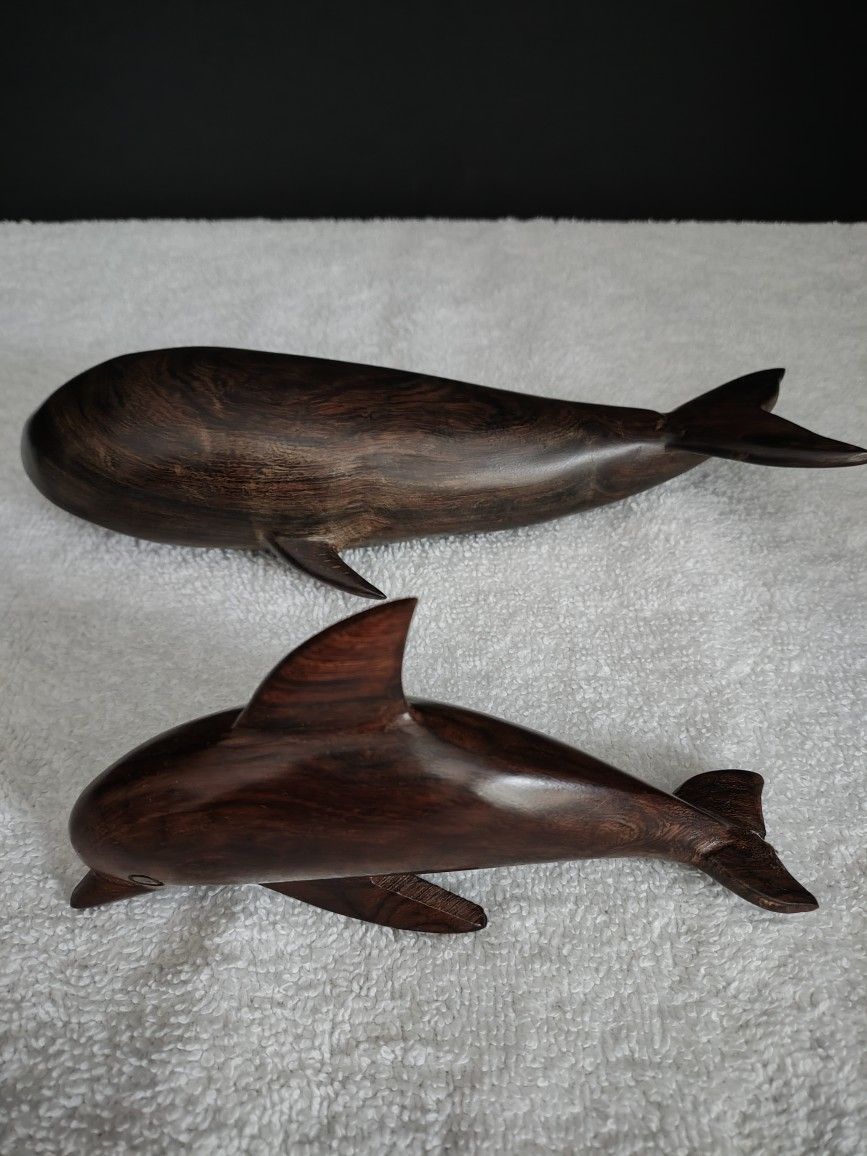 Hand Carved Ironwood Dolphin and Whale in very good condition, no chips. Price is for both. Dolphin is 5.5" L, Whale is 8" L. Thanks for looking please check out my other listings.