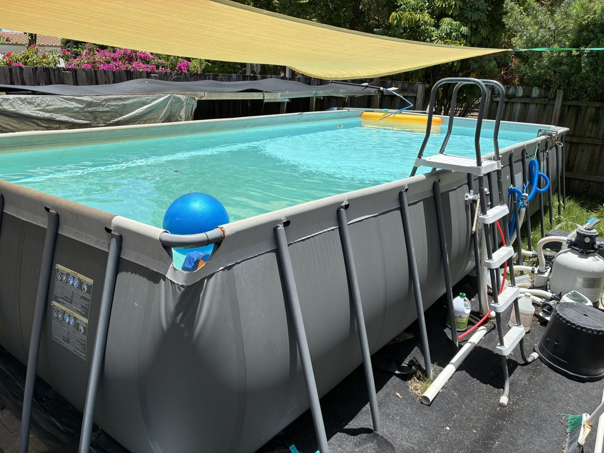 Above ground pool 24ft by 12ft Upgraded pump Heating system included Can install everything working perfectly Had it for less than 3years can see it before break down and reassembly