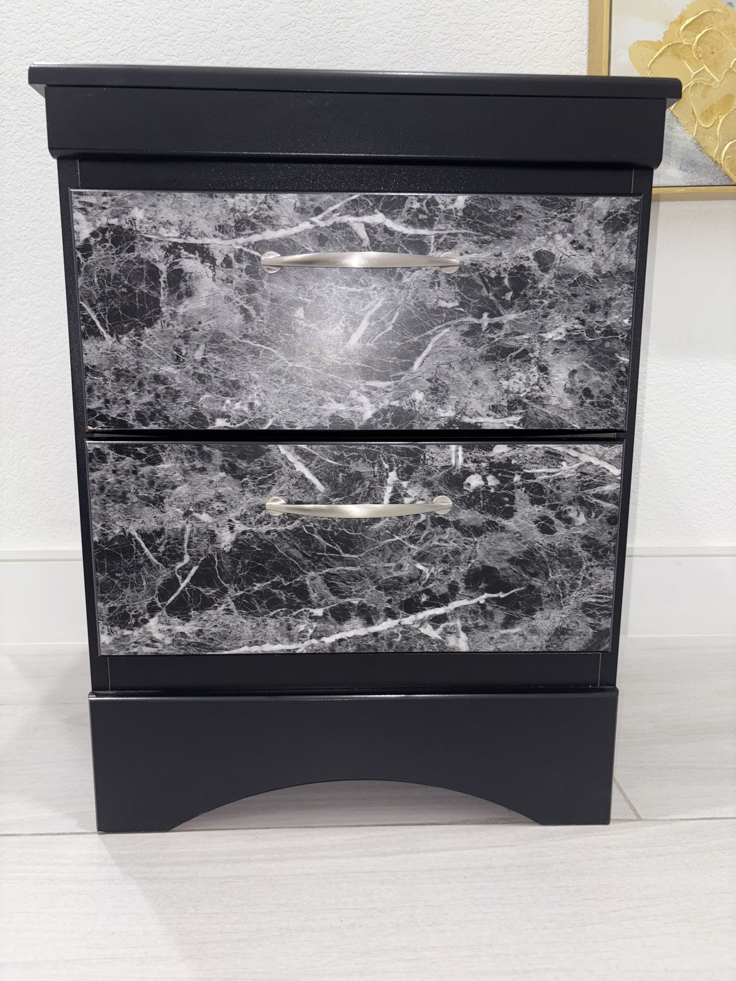 Sleek Modern 2 Drawer Nightstand with Dark Marble Style Front