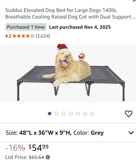 Elevated dog cot. Recieved and Opened nov 4th but never used