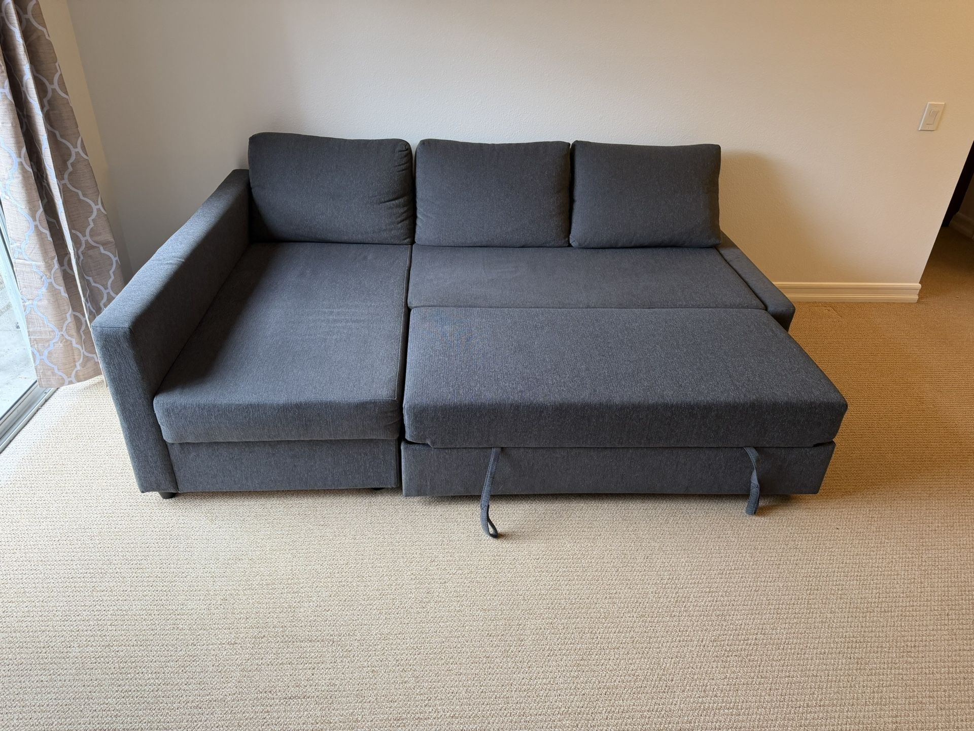 We just bought this couch a couple days ago. Put it together and realized we need a bigger couch. Previous owner had it professionally steam cleaned. No staines or odors. $350.