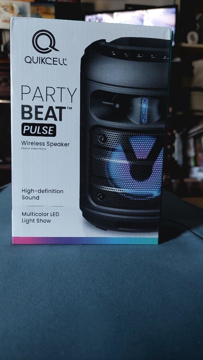 High Definition Sound, Party Grade Beat Plus, LED light show display box. Bluetooth enabled, fm radio, or connect for kareyoke, wireless speaker & rechargeable, includes manual.