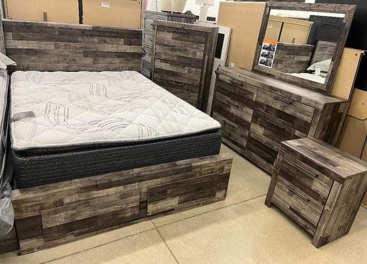 Multi Gray Bedroom Set Queen or King Bed Dresser Nightstand and Mirror Chest Option Derekson