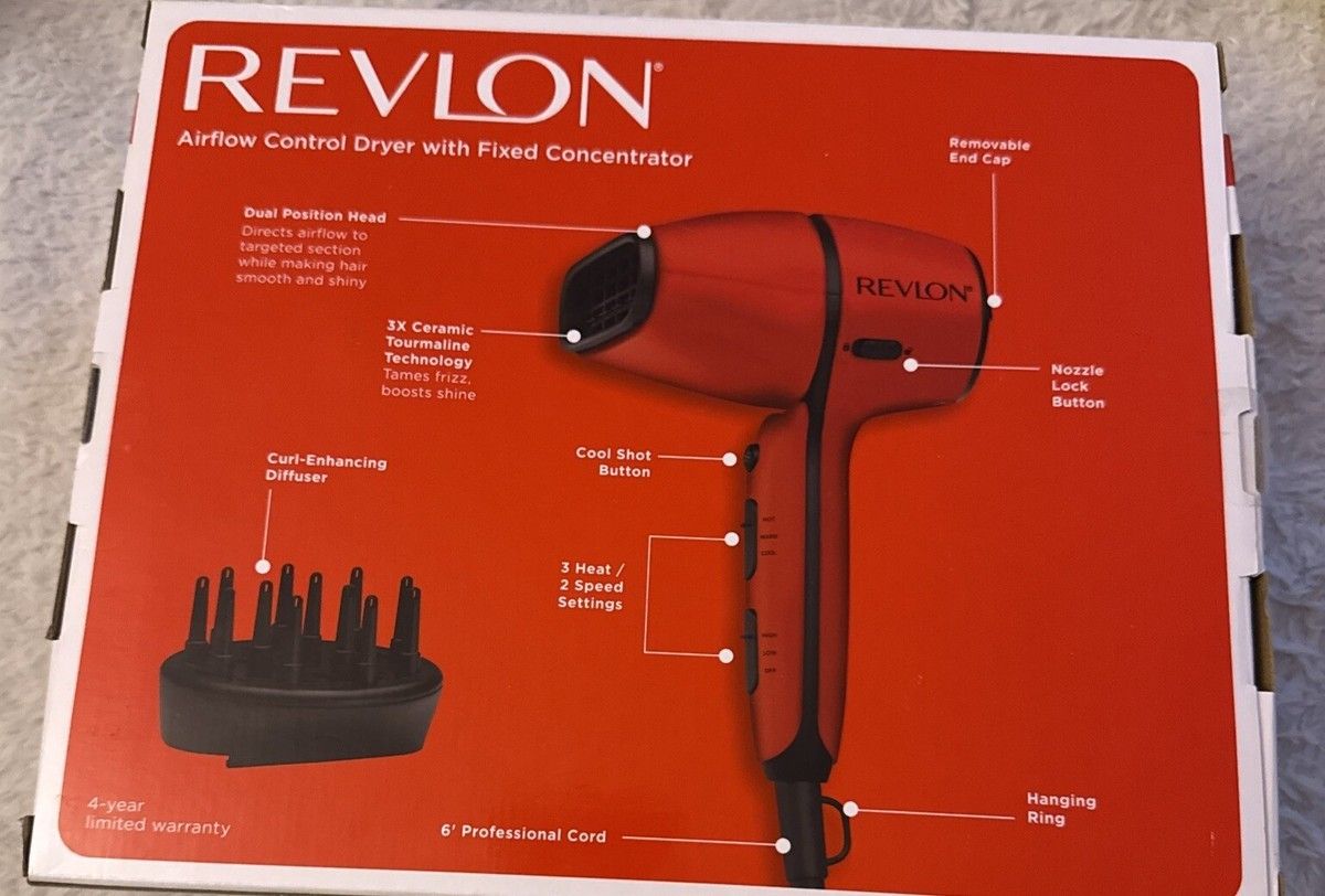 Vendo secador de cabello REVLON totalmente nuevo, aún en su caja original. Ideal para uso personal o como regalo. ✨ Características: 3 ajustes de calor / 2 velocidades Botón de aire frío Tecnología 3X Ceramic Tourmaline (reduce frizz y da brillo) Cabezal con posición dual Difusor para rizos incluido 🌪️ Cable profesional de 6 pies Garantía limitada de 4 años 💯 Funciona perfecto, nunca usado.