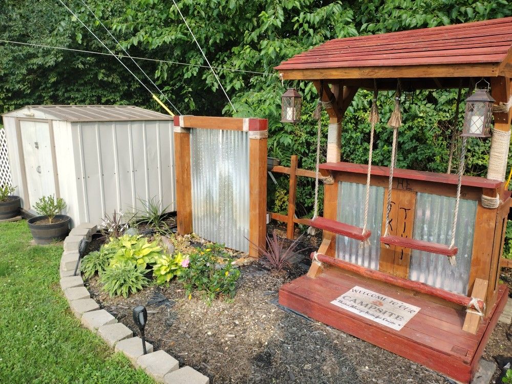 Custom tiki bar. With electric. Rope swings for stools. Hand made