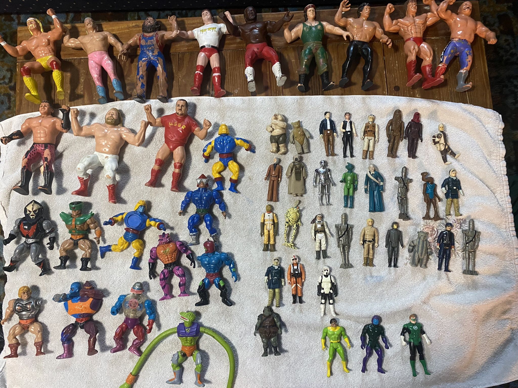 Star Wars, G.I. Joe, He-Man, WWF wrestling and more. Figures and vehicles. Conditions vary. Lot sold as is. $180 obo
