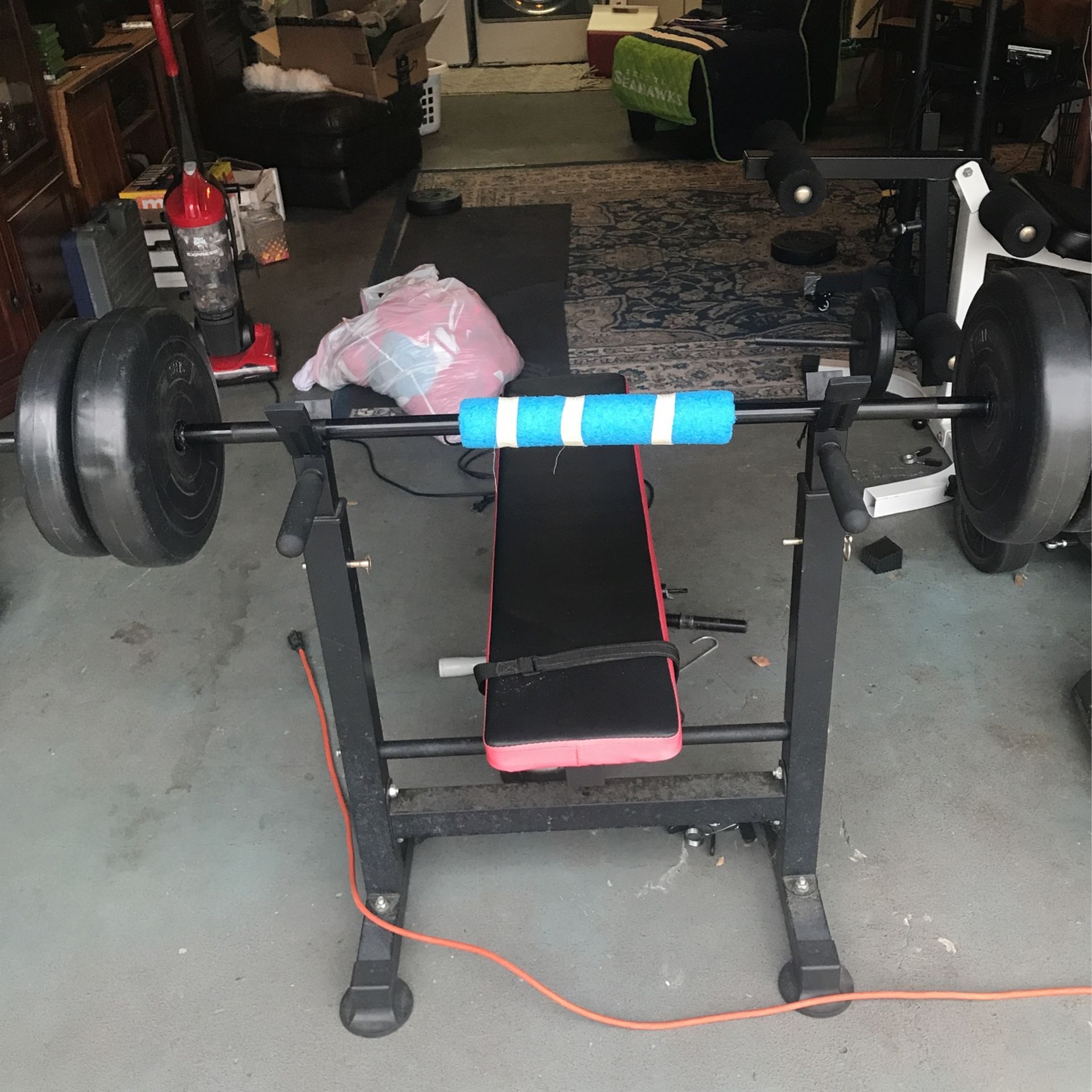This is a slightly used bunch great for starting out weightlifting only asking 80$ offers are included just do not low ball me