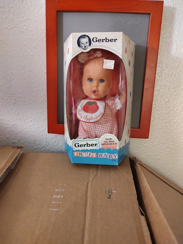 This is a 1995 Gerber Baby Applesauce. Fruit Baby Doll. Says it smells like real Applesauce. Has the Gerber baby face.$10