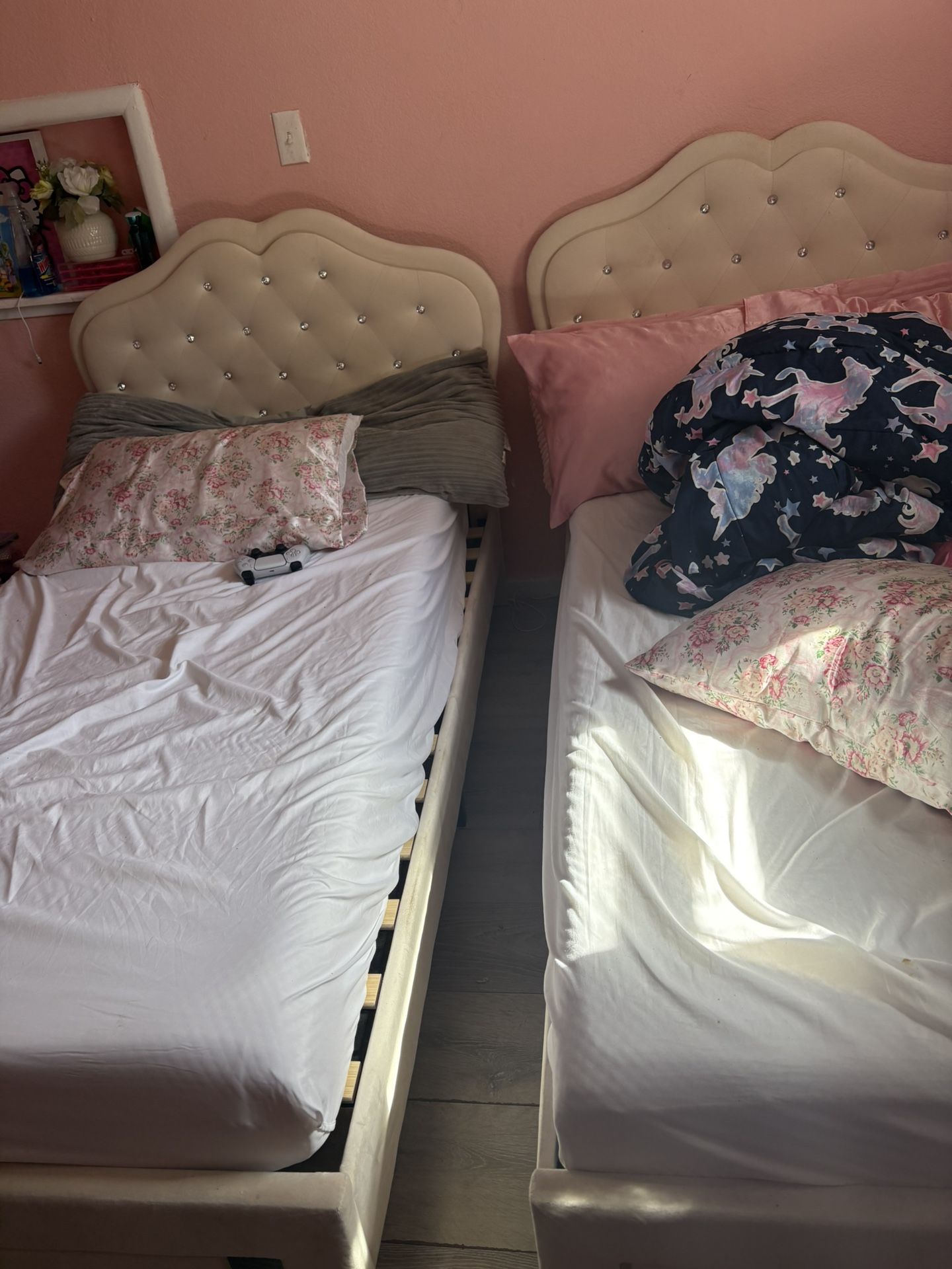 Two twin size bed with mattress LED light