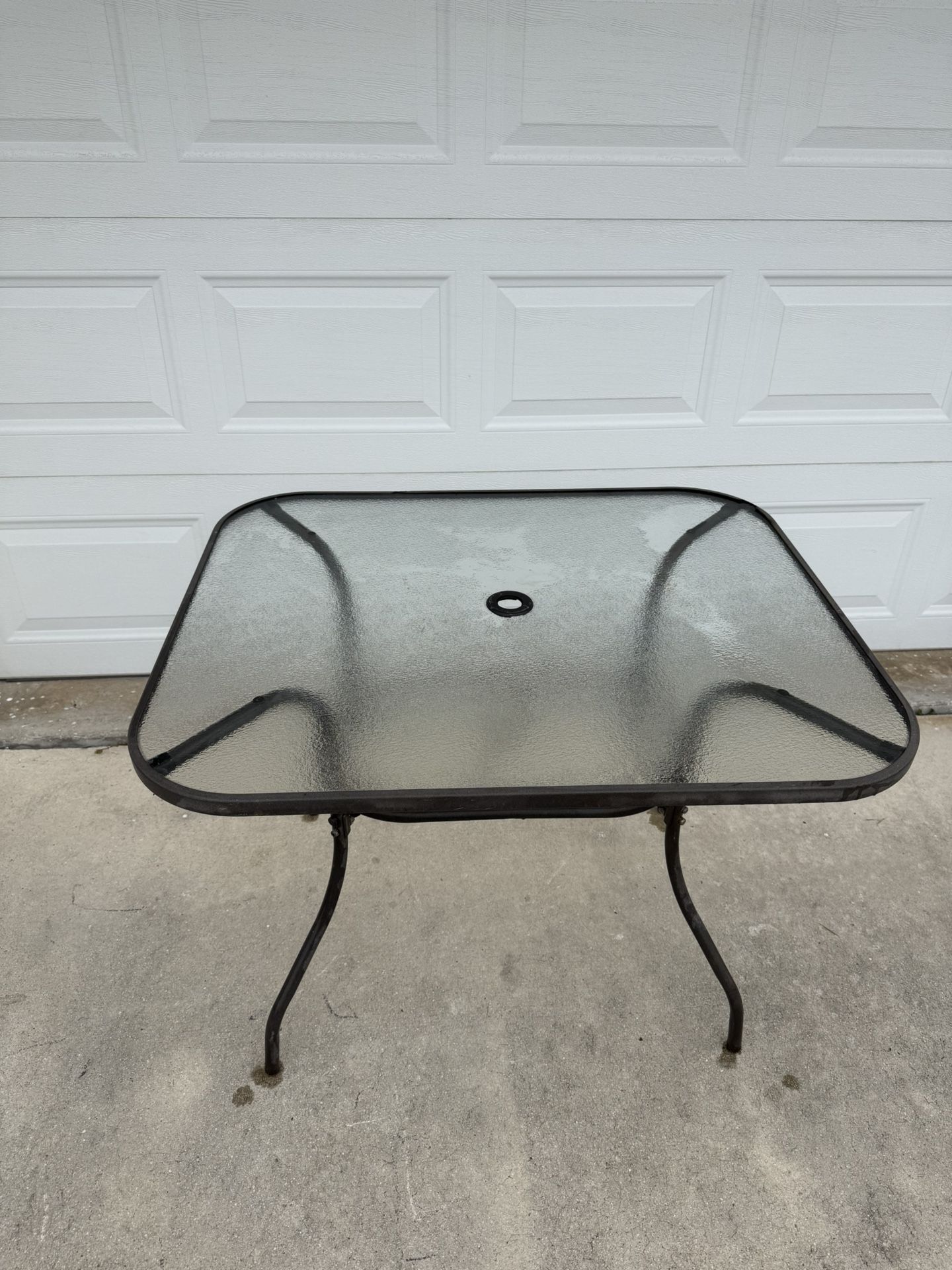 Glass Top Metal Patio Table - Black, Umbrella Ready