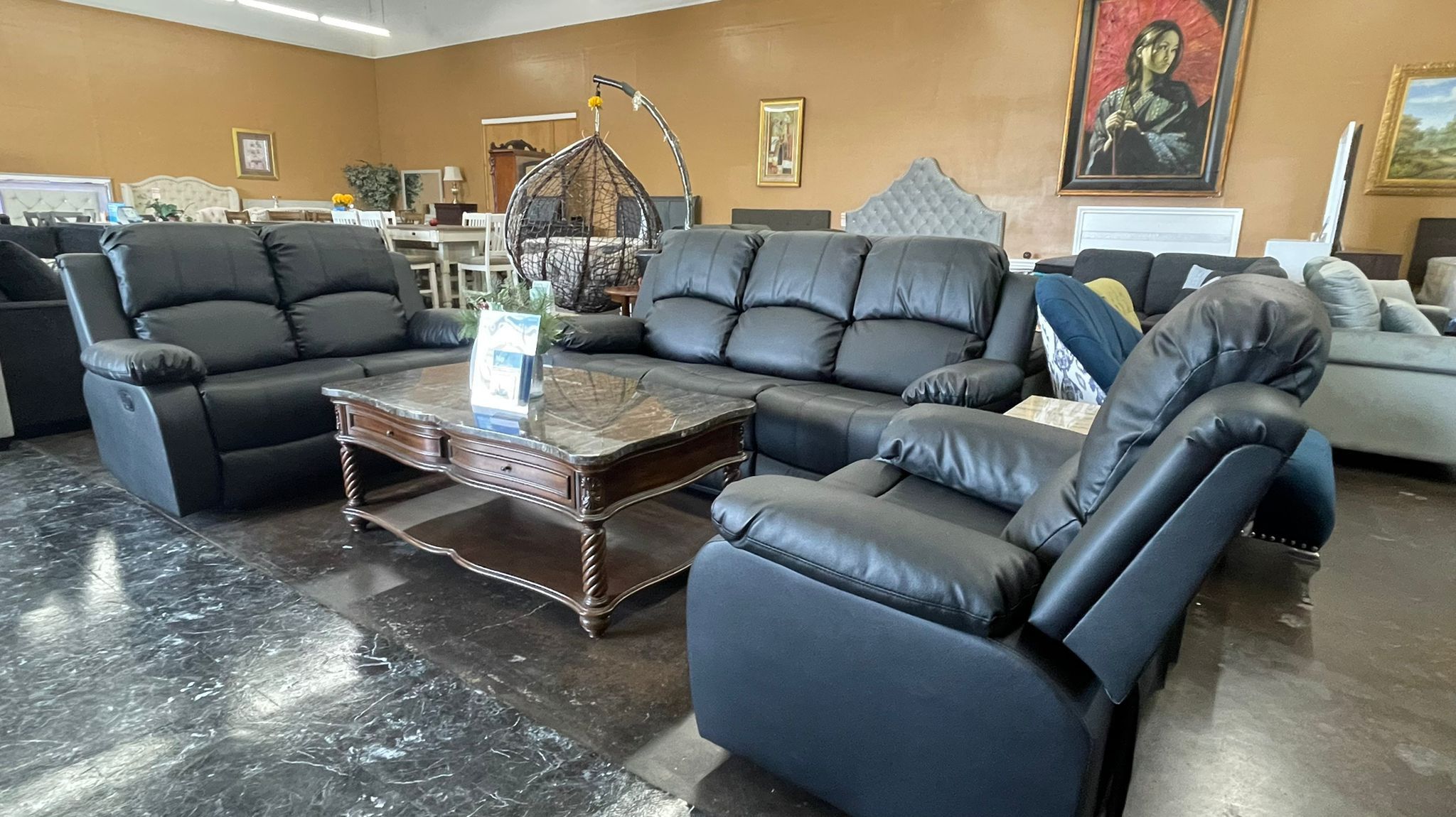 Black Bonded Leather Sofa Loveseat And Chair