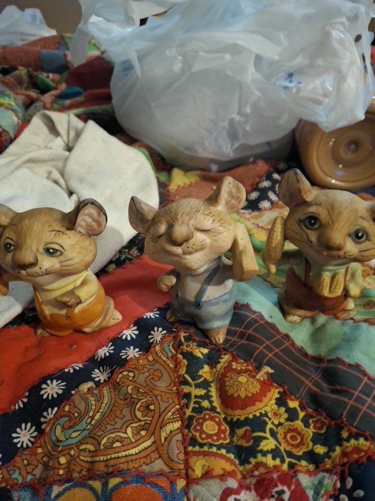 Cute, 3 vintage mouse Figurines by Homco. Approximately 3 to 4 inchesbtall. $20 or best offer.