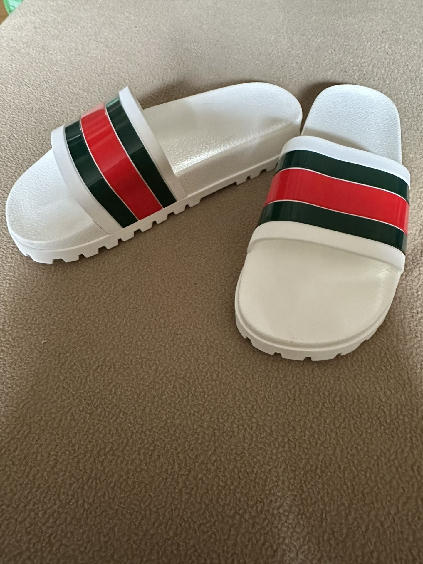 white gucci slides