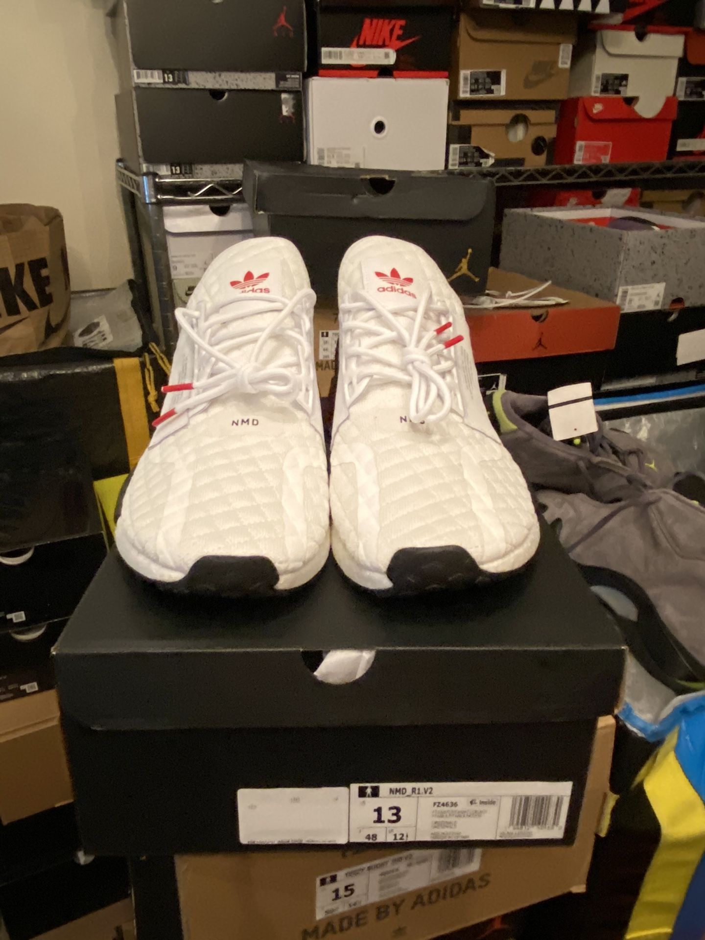 100% authentic Adidas Nmd R1 Quilted White Solar Red Size 13 Ds og all, Meet in Schaumburg Only Ds Trades Only, Serious People Message me