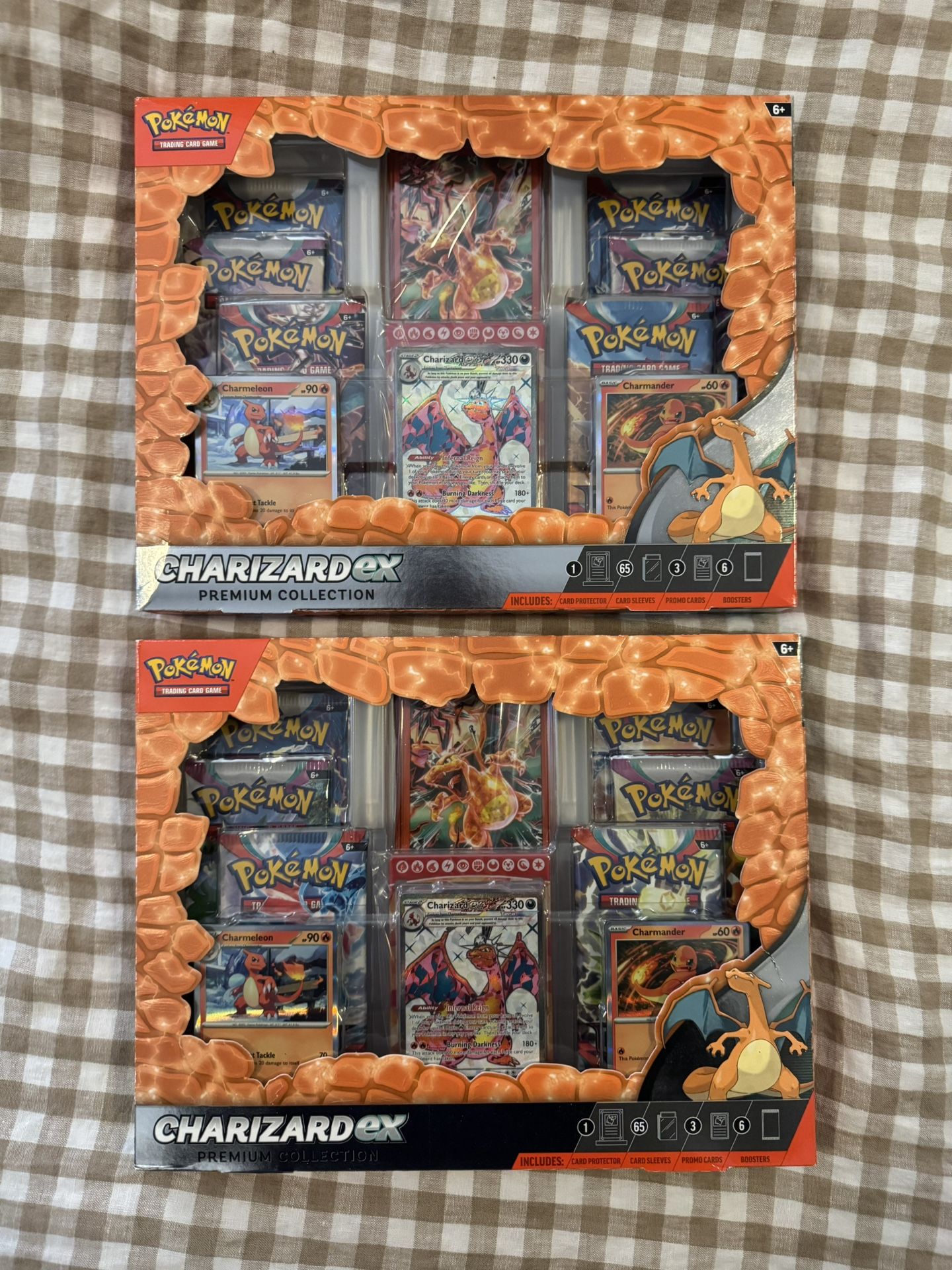 I have (2) boxes available. $90 each. Cash or Venmo. Local meetup in Park Slope or Grand Central/Bryant Park area. The Pokémon TCG: Charizard ex Premium Collection contains the following items: - 1 etched foil promo card featuring Charizard ex - 2 foil cards featuring Charmander and Charmeleon - 6 Pokemon TCG booster packs - 1 magnetic card protector with display base - 65 card sleeves featuring Charizard as a Tera Pokemon - A code card for Pokemon TCG Live