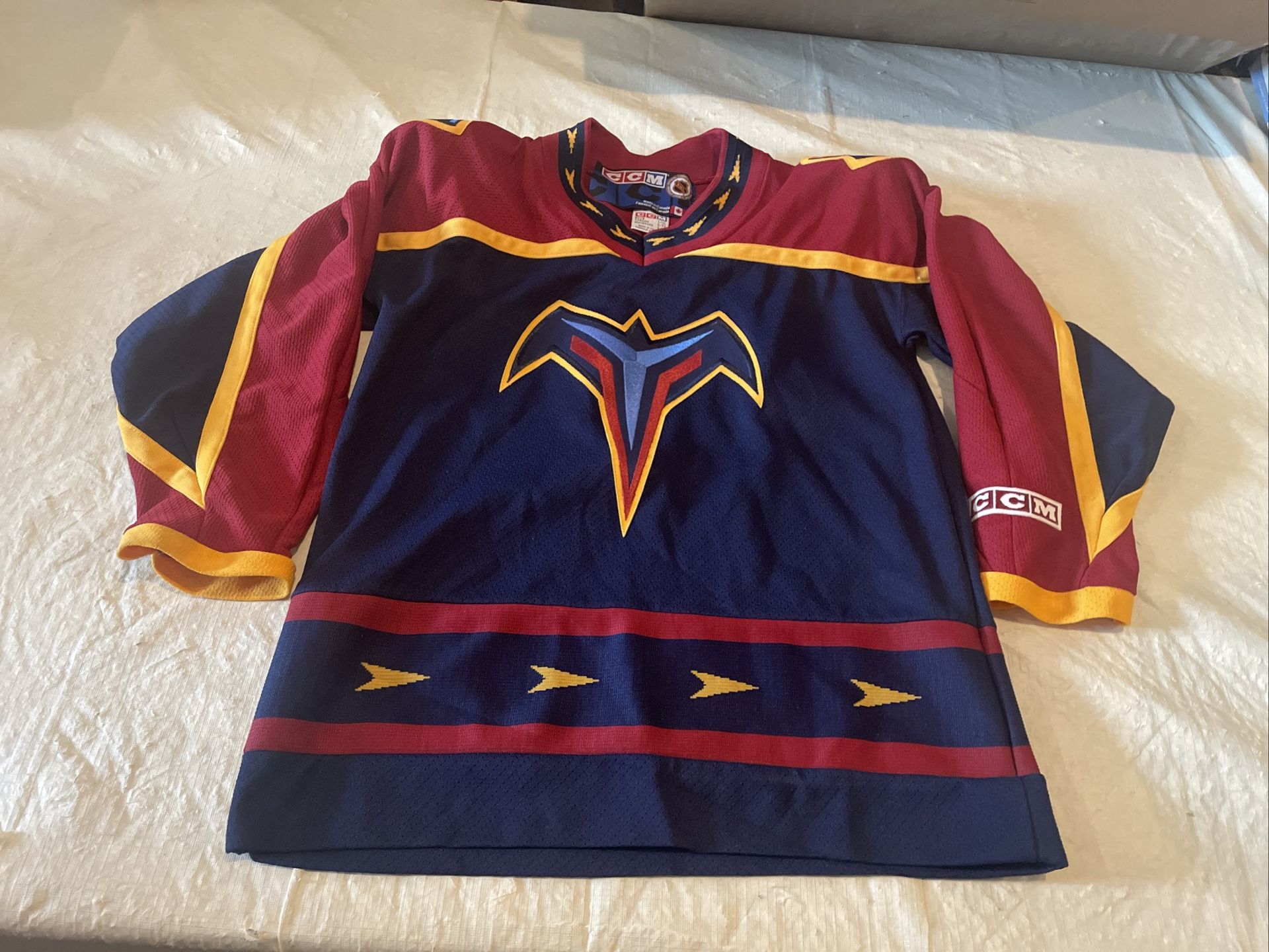 Youth L/xl Atlanta Thrashers Ccm Jersey Blue Clean Mic Air Knit Vintage Defunct