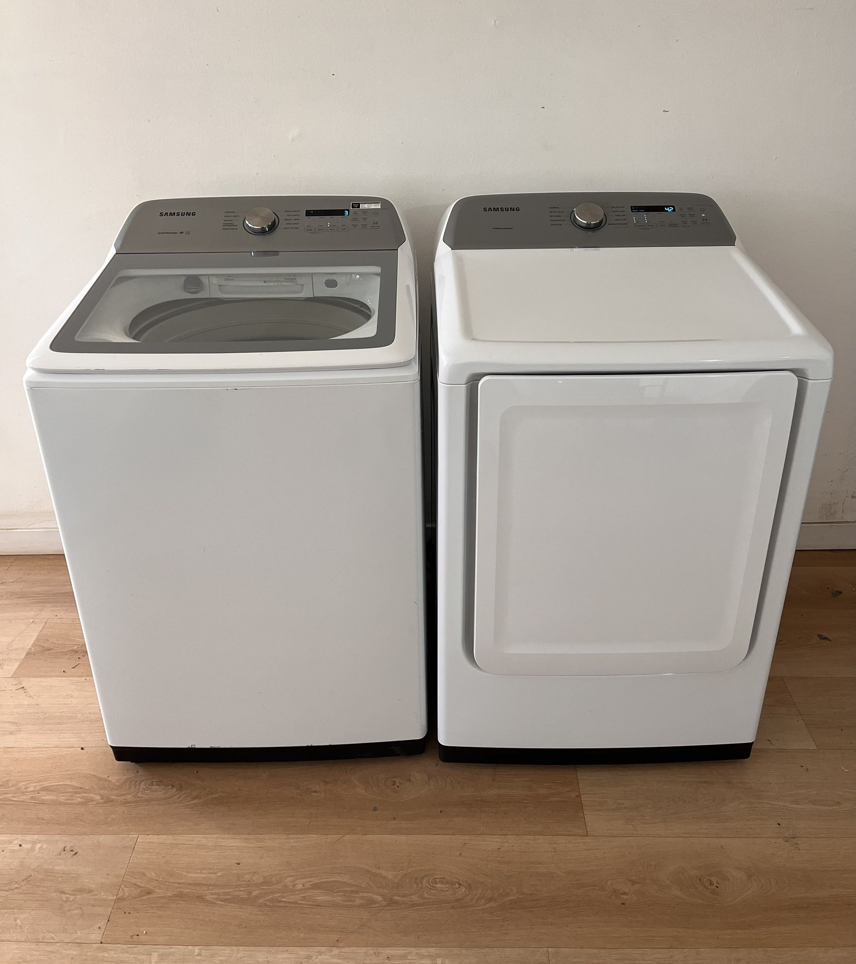 Clean and in fully working condition - Offering Delivery with Listed Price No deposit required SAME DAY DELIVERY AVAILABLE π β’ 5 cu. ft. High-Efficiency Top Load Washer with Impeller and Active Water Jet β’ 7.4 Cu. Ft. Gas Dryer with Sensor Dry H 44.6 in, W 27.5 in, D 29.4 in