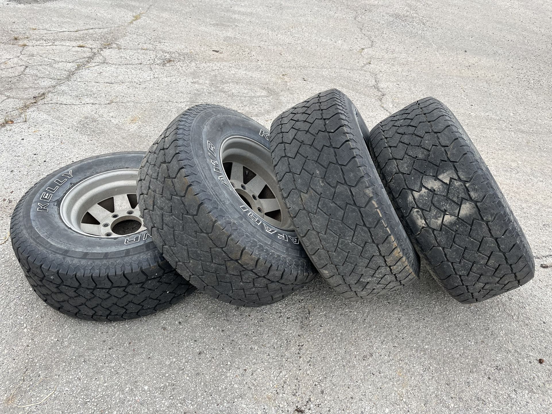 Have a nice straight set of 4 old school Western aluminum rims off a 1984 GMC High Sierra 4x4 2500. They’re 8 lug (do have lugs) 16 1/2 x 12’s, has 33” x 12 1/2” tires, they hold air but…ARE NOT ROAD WORTHY!!! (((Cash & carry only))) NO LOWBALLERS! No trades… ***NO SCAMMERS! YOUR MESSAGES WILL NOT BE ANSWERED BUT WILL BE REPORTED***