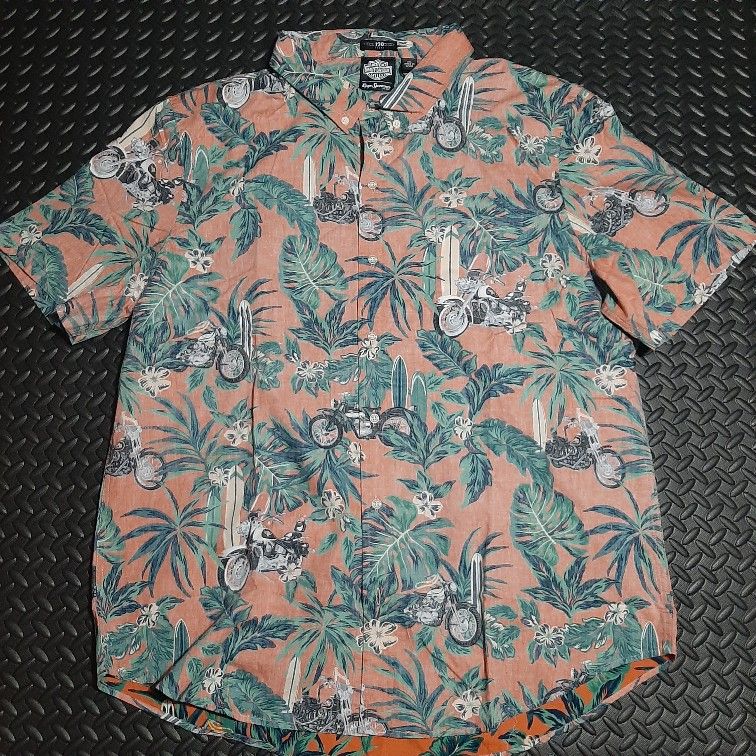 Harley-Davidson Reyn Spooner Aloha Orange hula button-up shirt size 2XL.......(kp15)
