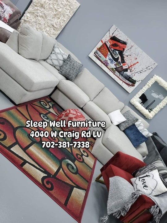 Cozy Sectional Sleeper 👉👉$1698 👉NOW! (Originally $2000) 🙋♂️👉SLEEP WELL FURNITURE 4040 W CRAIG RD LAS VEGAS Open 10-7pm Hablamos Español 👉We offer Financing💲 Take home it Home 👉$50 DOWN No credit required, Zero interest up to 120 days Select from Koalofi, Acima finance. Furniture Sectional Sofa Queen King Mattress Bedroom Bunk beds Dining table sets