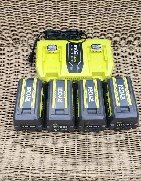 Ryobi (4) 6ah Batteries And Rapid Double Charger