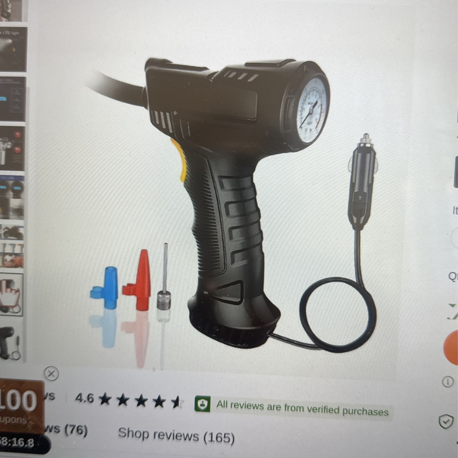 Power air compressor 150 psi. Tire inflator pump with pressure gauge and led light for car motorcycle and bicycle tires
