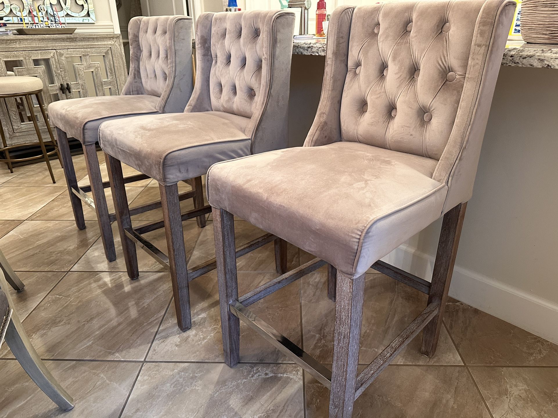 ✨ High-Quality Tufted Barstools – Like New! (Set of 3) ✨ Price: $200 for all three (sold as a set) Upgrade your kitchen or bar area with these gorgeous, gently-used barstools! They’re in excellent, like-new condition and come from a smoke-free home. ✔️ Features: • High-performance, easy-to-clean fabric • Elegant tufted backs • Stylish gold accents • Sturdy gray sand-washed wood legs • Modern, on-trend design • Extremely comfortable and supportive 40 inches total height, Seat 24 inches high. These barstools look designer-level and elevate any space instantly. Only selling because I’m changing my décor. 📏 Quantity: Set of 3 💰 Price: $200 for the full set 🚚 Pickup: Boca Raton Message me if you’d like more photos: