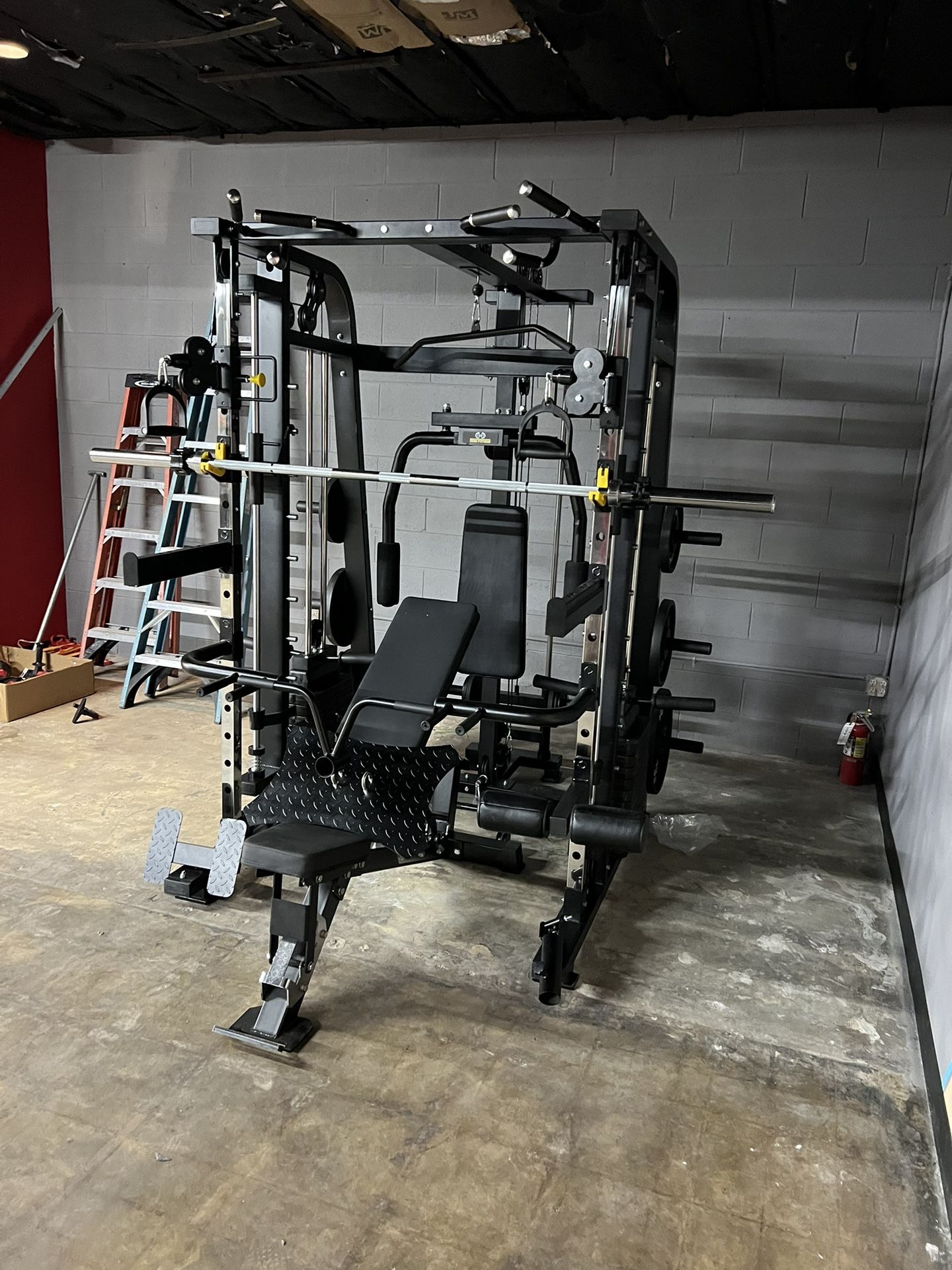 Introducing the ultimate all-in-one heavy-duty commercial Smith Machine 300✅ designed to take your fitness to the next level💪 👉- . This machine is an all-in-one fitness station that combines a Smith machine,✅power rack✅, and cable system✅ into one seamless unit, making it the perfect addition to any commercial gym or home gym setup.🔥 👉The Smith machine features a solid steel frame✔️ with precision linear bearings✔️ for a smooth and controlled movement,✔️ allowing you to perform a wide range of exercises with ease✔️. It also includes adjustable safety stops, dip station to provide added security when lifting heavy weights✔️. Features & Attachments 👉 INCLUDES: HEAVY DUTY UPGRADED BENCH✔️ - 7ft 45lbs OLYMPIC BARBELL✔️🔥 - 245lbs CAST IRON WEIGHT SET ✔️🔥 - ULTIMATE ALL IN ONE MACHINE🔥✔️ - Max Loading Weight Rating: 1500 lbs 💥✔️ Total Floor Spacing: 4 square meters/ 43 Sq/Fft💥✔️ Adjustable pulley systems 💥✔️ Adjustable spotter arms 💥✔️