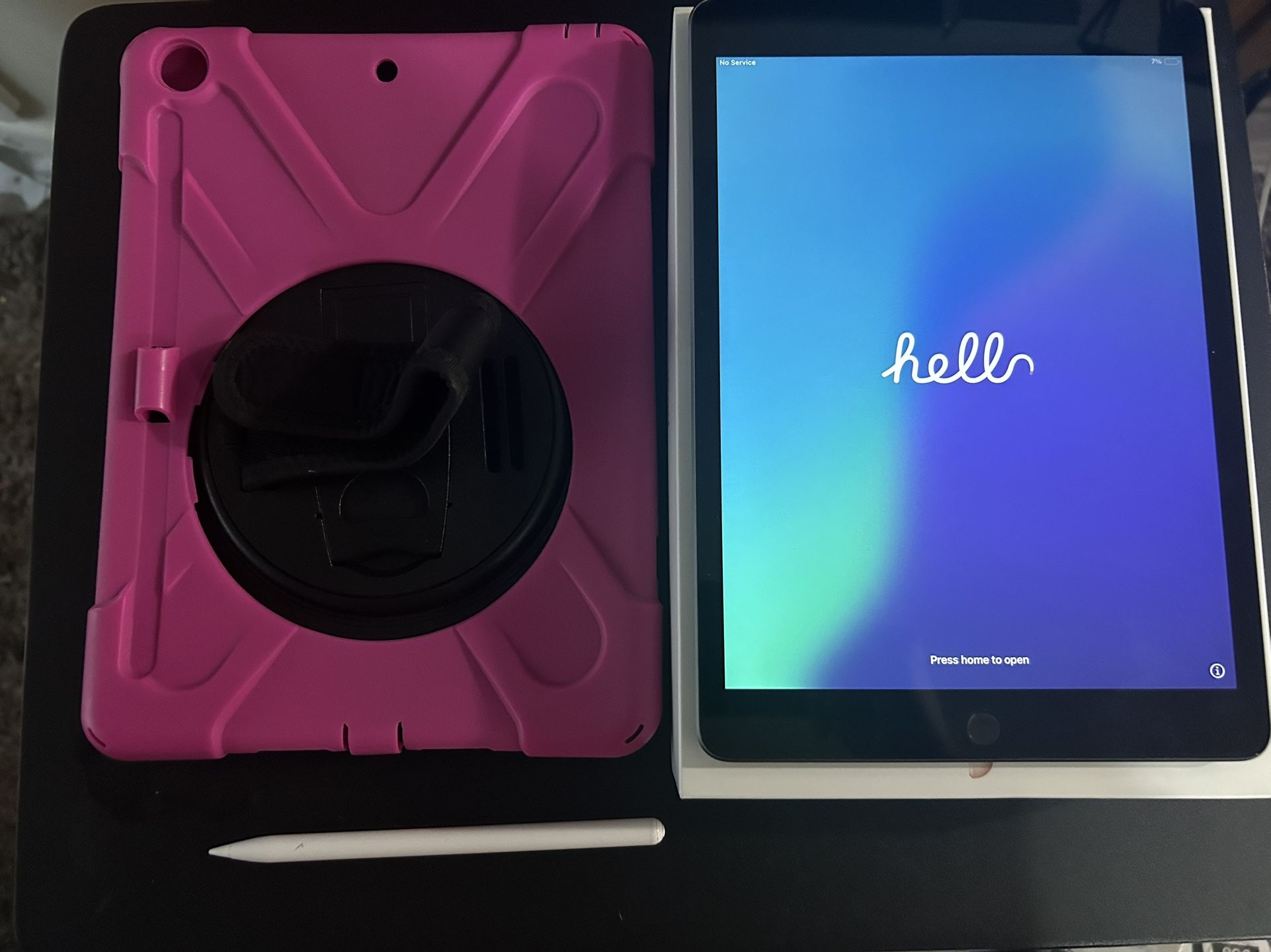 Screen is ABSOLUTELY pristine, has always had a glass screen protector and hard body case on. This bundle comes with- iPad 8th gen (2020) 32gb WiFi + Cellular Pink hard body silicone case WITH pencil holder, adjustable stand and hand grip Aftermarket iPad pencil Great gift for anyone π