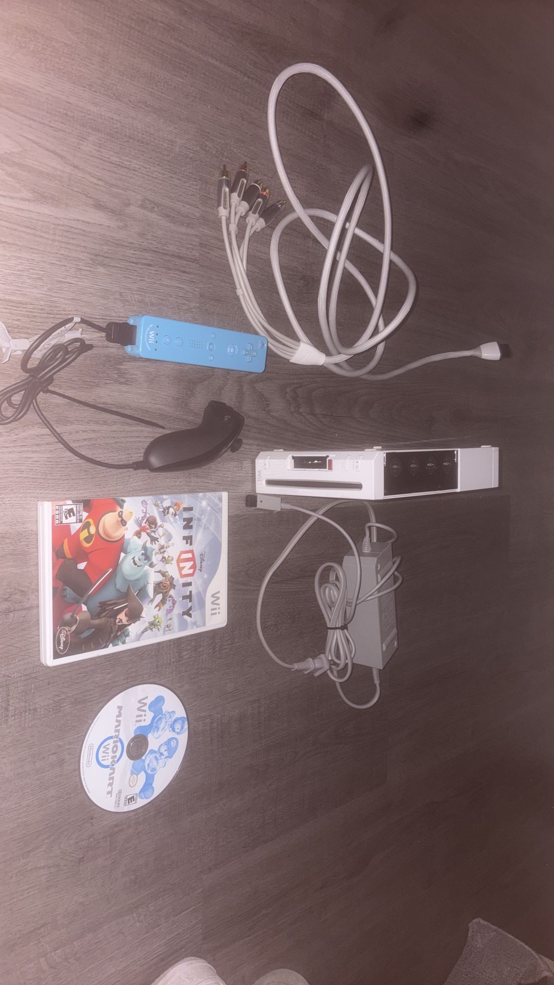🎮 Nintendo Wii (GameCube Compatible Model) + Mario Kart + Controller – 80$ OBO 🎮 Selling an original white Nintendo Wii (RVL-001 model) — the backwards compatible version that plays GameCube games. Includes: • Wii console (works great) • Power cord + AV cables • Blue Wii Motion Plus controller • Nunchuck • Mario Kart Wii (disc only) • Disney Infinity (Wii) Everything works. Only thing missing is the sensor bar (cheap to replace online). Good condition and ready to play. 💰 Asking 80$ OBO Not in a rush but open to reasonable offers. Local pickup.