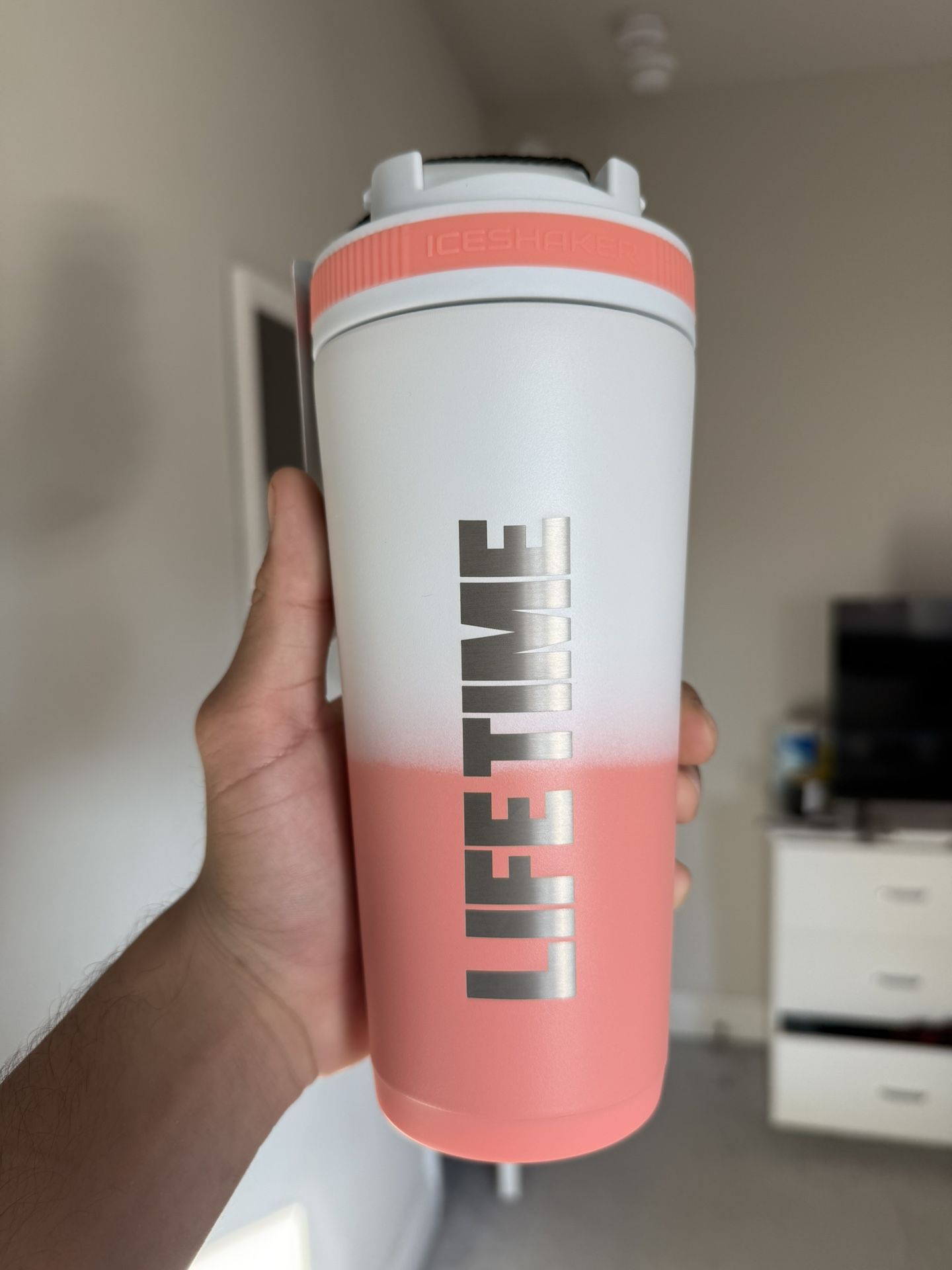 NEW | Ice Shaker 26oz Insulated Shaker Cup - Lifetime Fitness Edition (Desert Rose) This is a brand new, never-used 26oz Ice Shaker, a special limited edition created for Lifetime Fitness. It features the unique Desert Rose color gradient and the LIFETIME logo, making it a stylish and high-performance addition to your gym routine. Why Choose the Ice Shaker? * Superior Insulation: Double-walled, vacuum-insulated stainless steel keeps your drinks ice cold for over 30 hours! Perfect for long gym sessions, sports, or a day outdoors. * Lifetime Fitness Exclusive: This edition is a unique collaboration with Lifetime Fitness, featuring a clean white and coral-pink (Desert Rose) ombre design and the prominent LIFETIME logo. * 26oz Capacity: Ideal size for protein shakes, pre-workouts, smoothies, water, and more. * As Seen on Shark Tank: The Ice Shaker brand is known for its quality and was famously featured on the TV show Shark Tank. * Designed for Convenience: * Removable Agitator/Strainer: Ensures smooth, clump-free mixing of protein powder and supplements. * Spill + Leak-Proof Lid: A secure, flip-top lid with a carrying loop for easy transport. * Durable & Made to Last: Designed in the USA with high-quality, durable materials. Product Details: * Brand: Ice Shaker (Lifetime Fitness Edition) * Color: Desert Rose (White/Coral Ombre) * Capacity: 26 oz / 770 mL * Material: Double Wall Vacuum Insulated Stainless Steel * Condition: Brand New with Tag Get this exclusive, high-performance shaker cup today to keep your fitness drinks perfectly chilled! (I CAN SHIP)