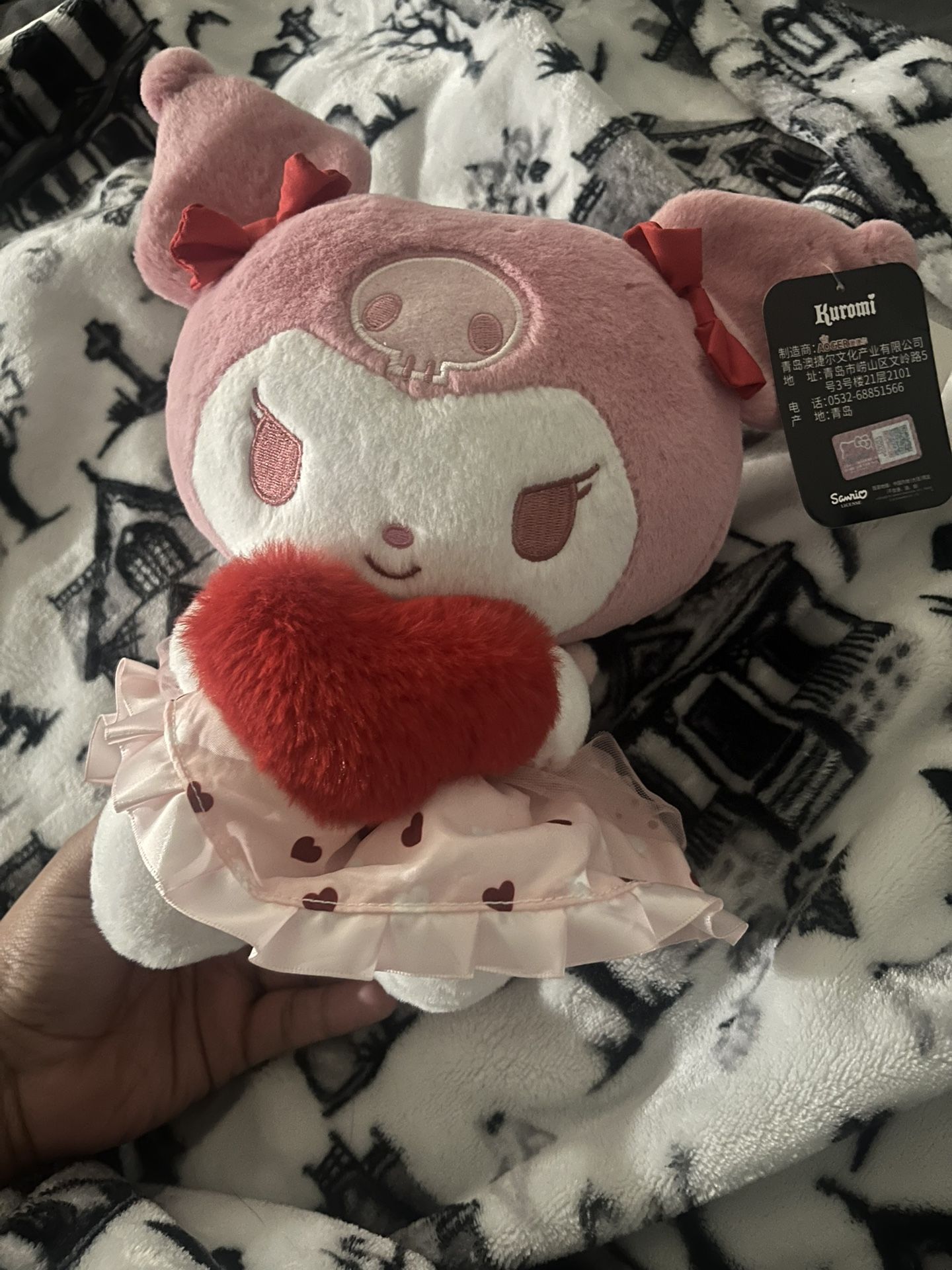 tags, used as display. loved, kuromi valentine’s day plush
